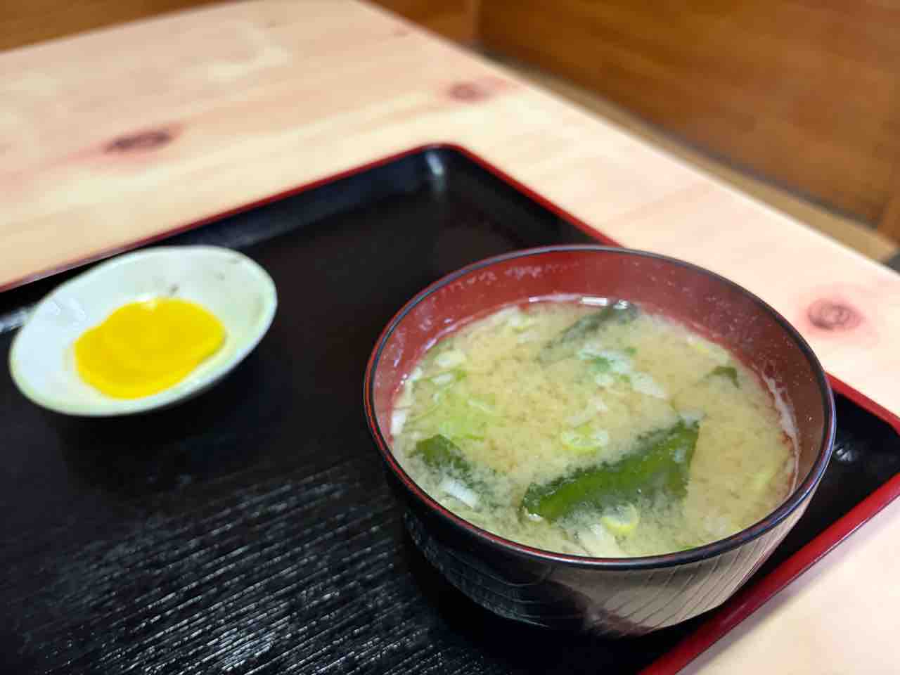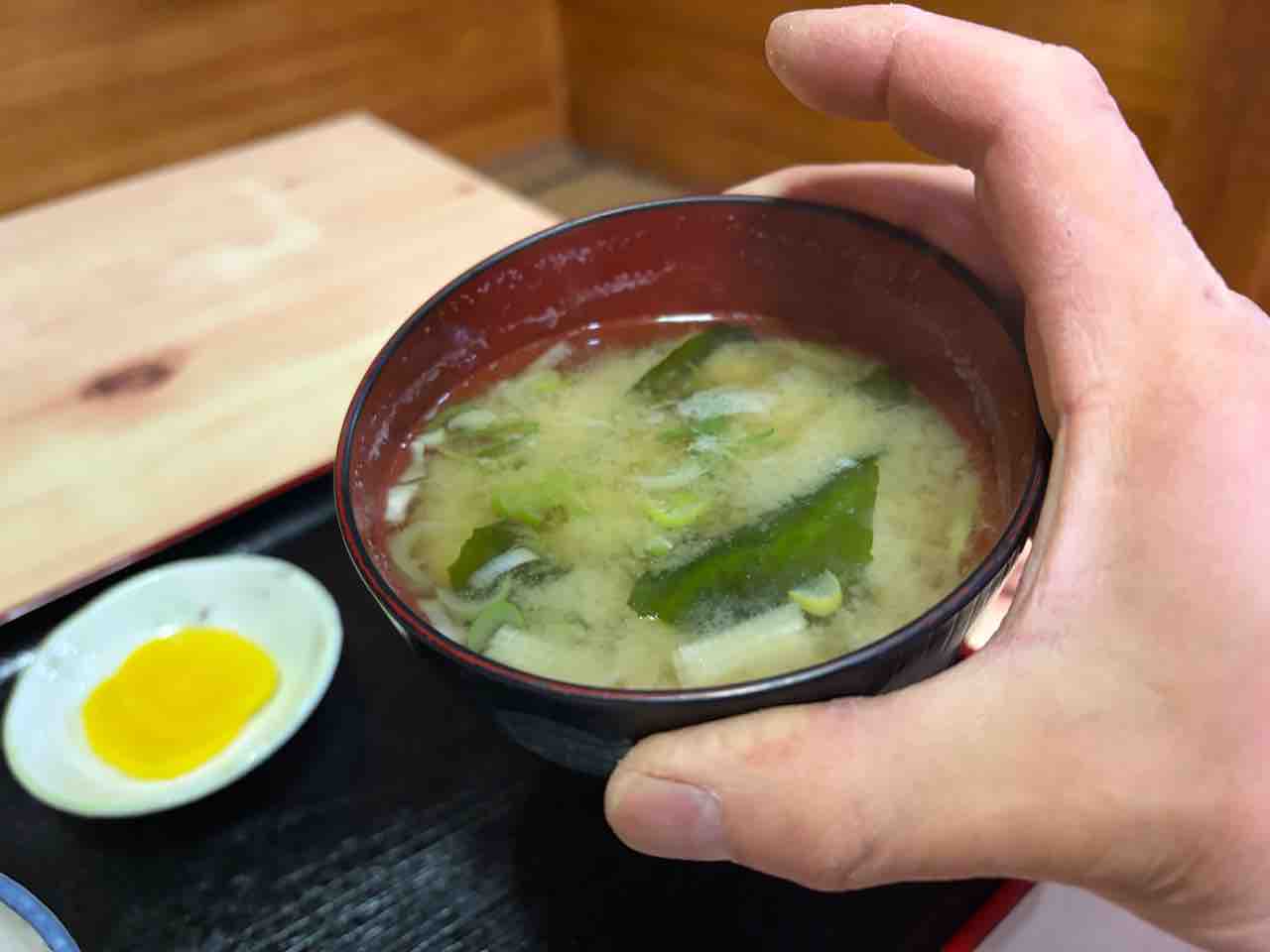 途中熱々お味噌汁を飲む