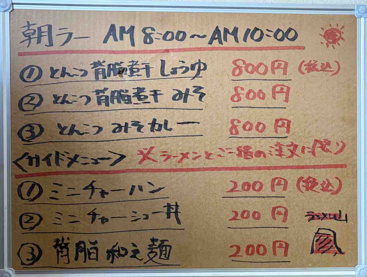 朝ラーもある様で8時〜10時迄の間