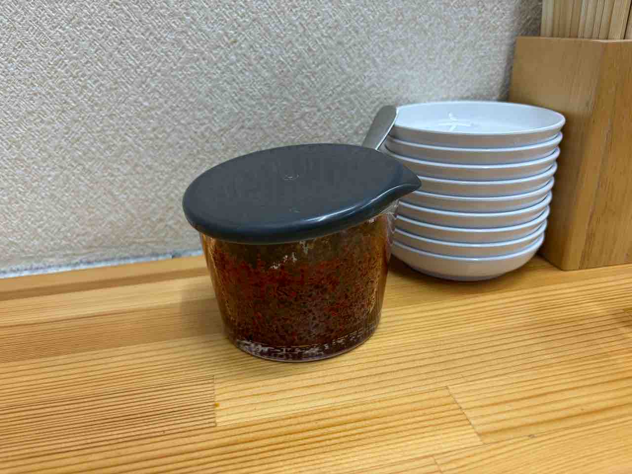 テーブルを見てみると味変の調味料が色々置かれておりました