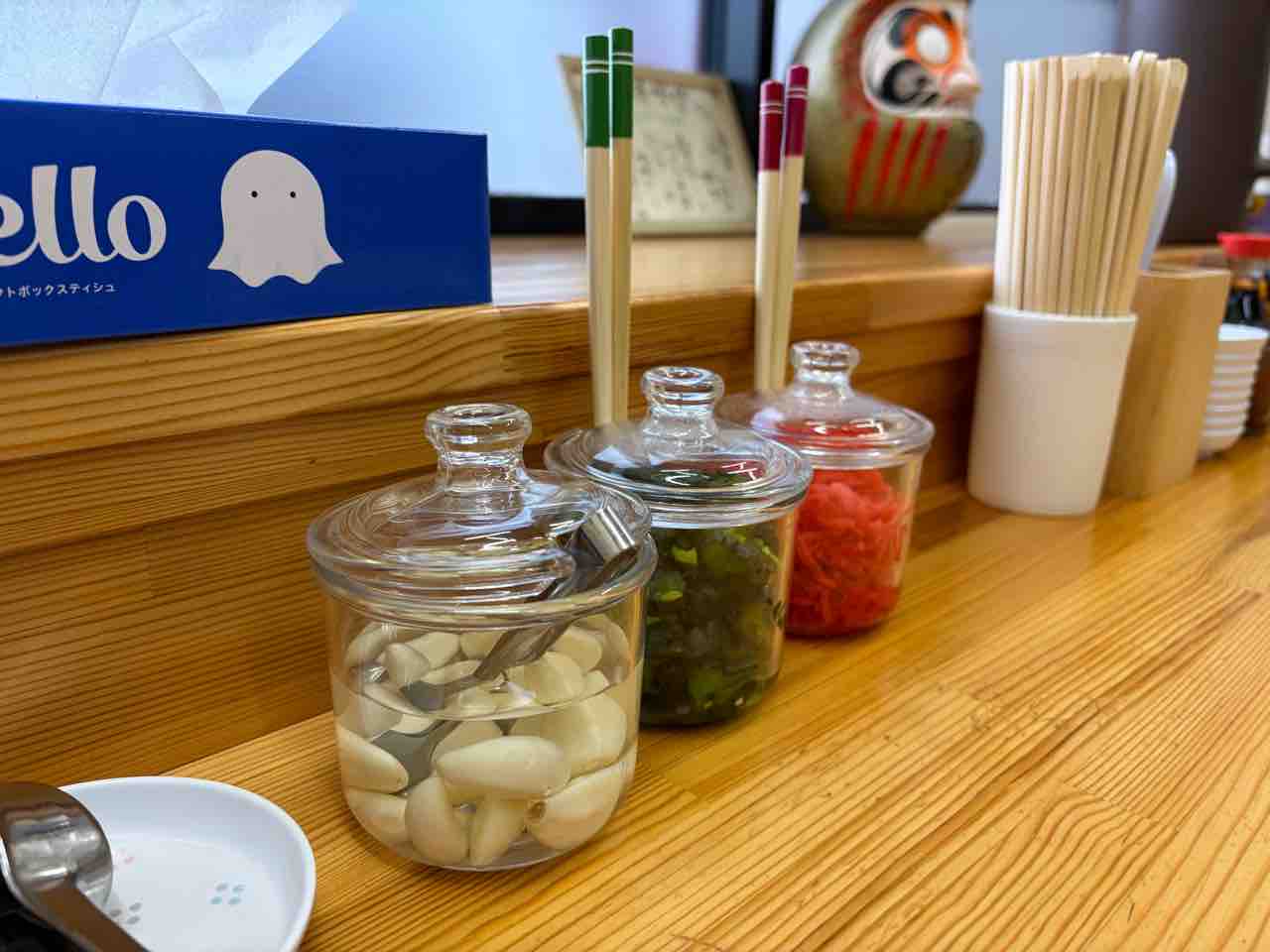 濃厚な豚骨スープで臭みがなくガツンとくる感じではないけれど食べやすく 今回は使用しませんでしたが 味変の素材が沢山あり 色々味わえそうだなぁと思いました