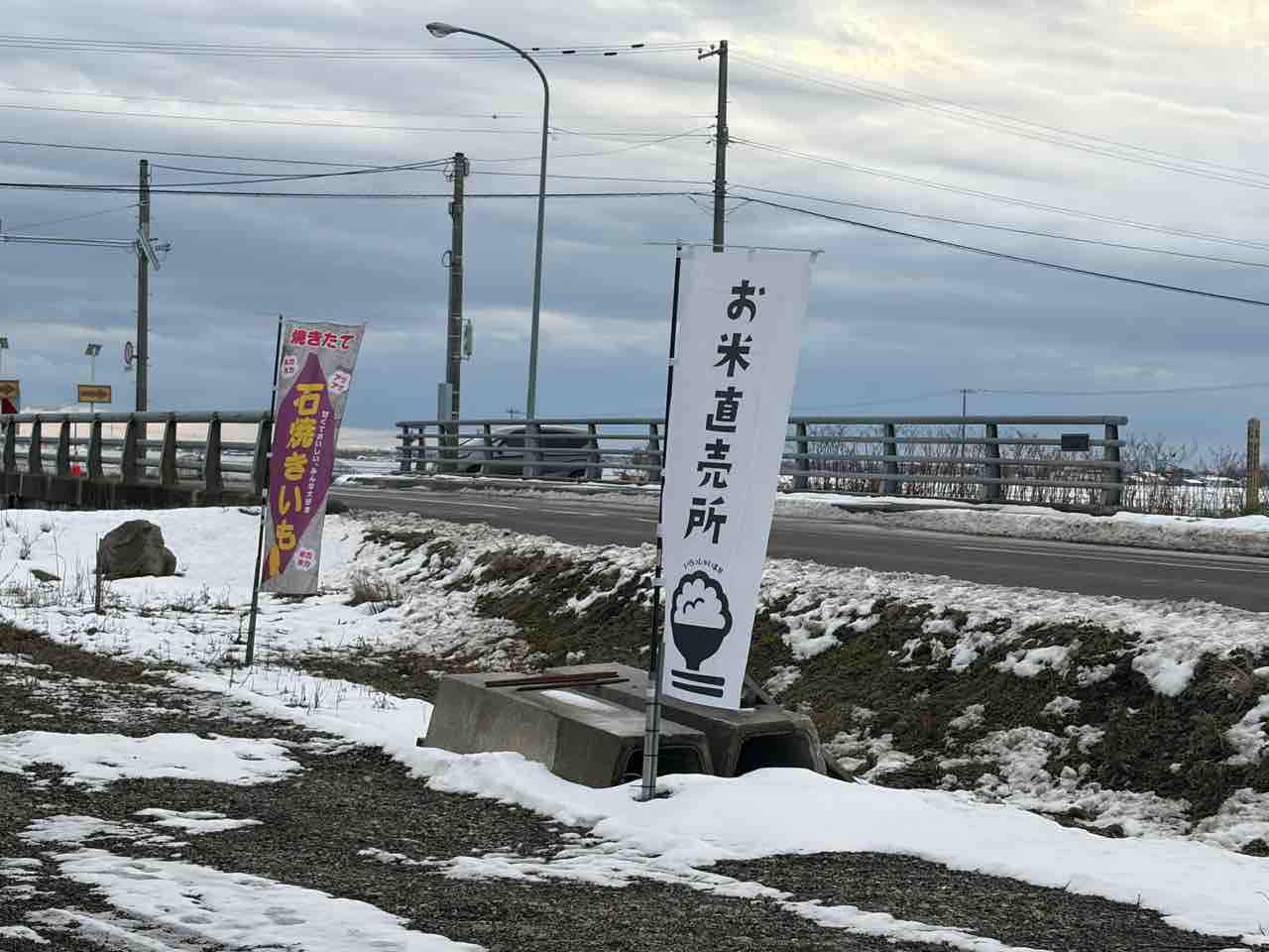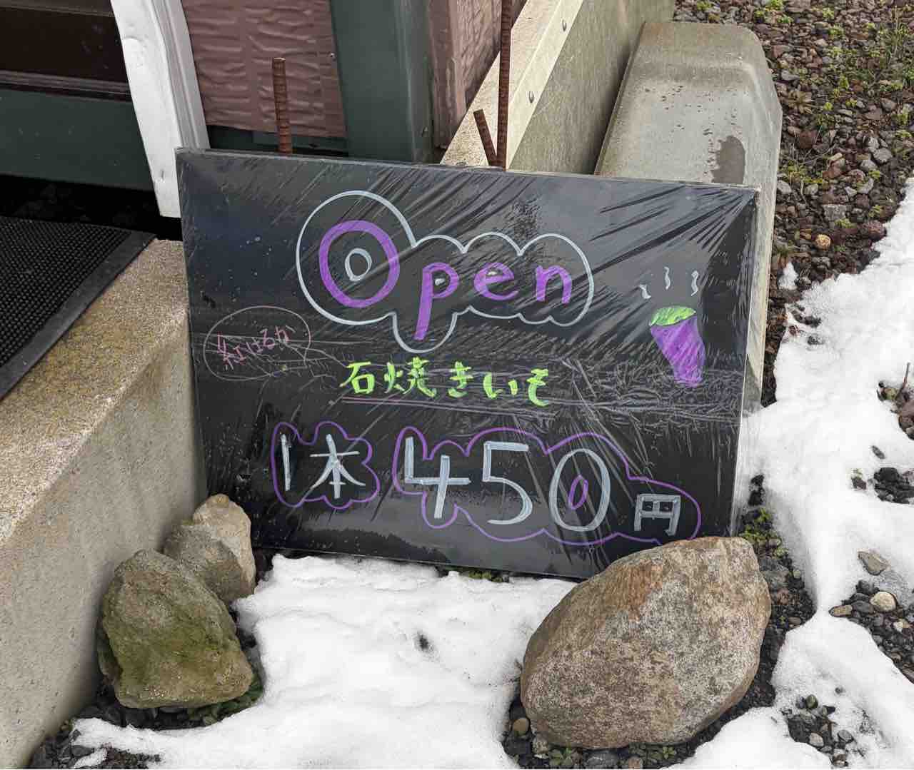 とある日に七飯町の農道通り 温泉に向かっていると 何やら石焼き芋の幟が気になりまして思わず立ち寄っちゃいました