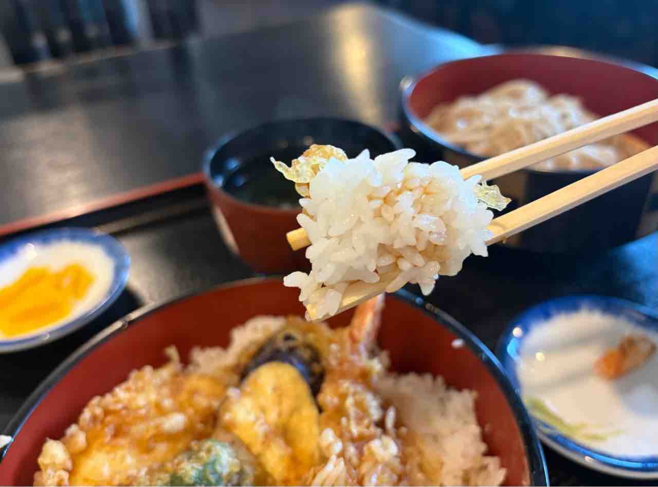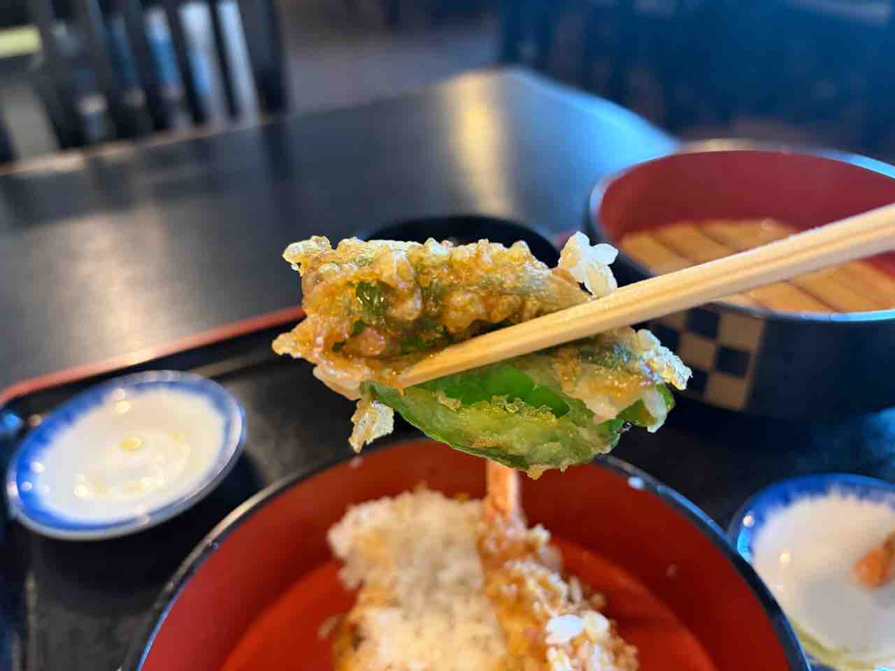 天丼(エビ天×2、ピーマン、茄子、イカ)