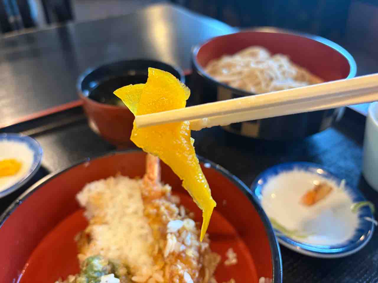 7〜8分ほどで 天丼セットが運ばれてきました