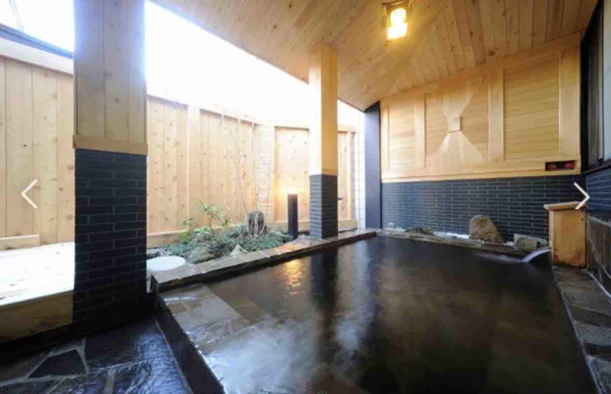 湯は黄色澄明で湯に触れるとお肌がぬるっとスベスベになる極上のモール泉です