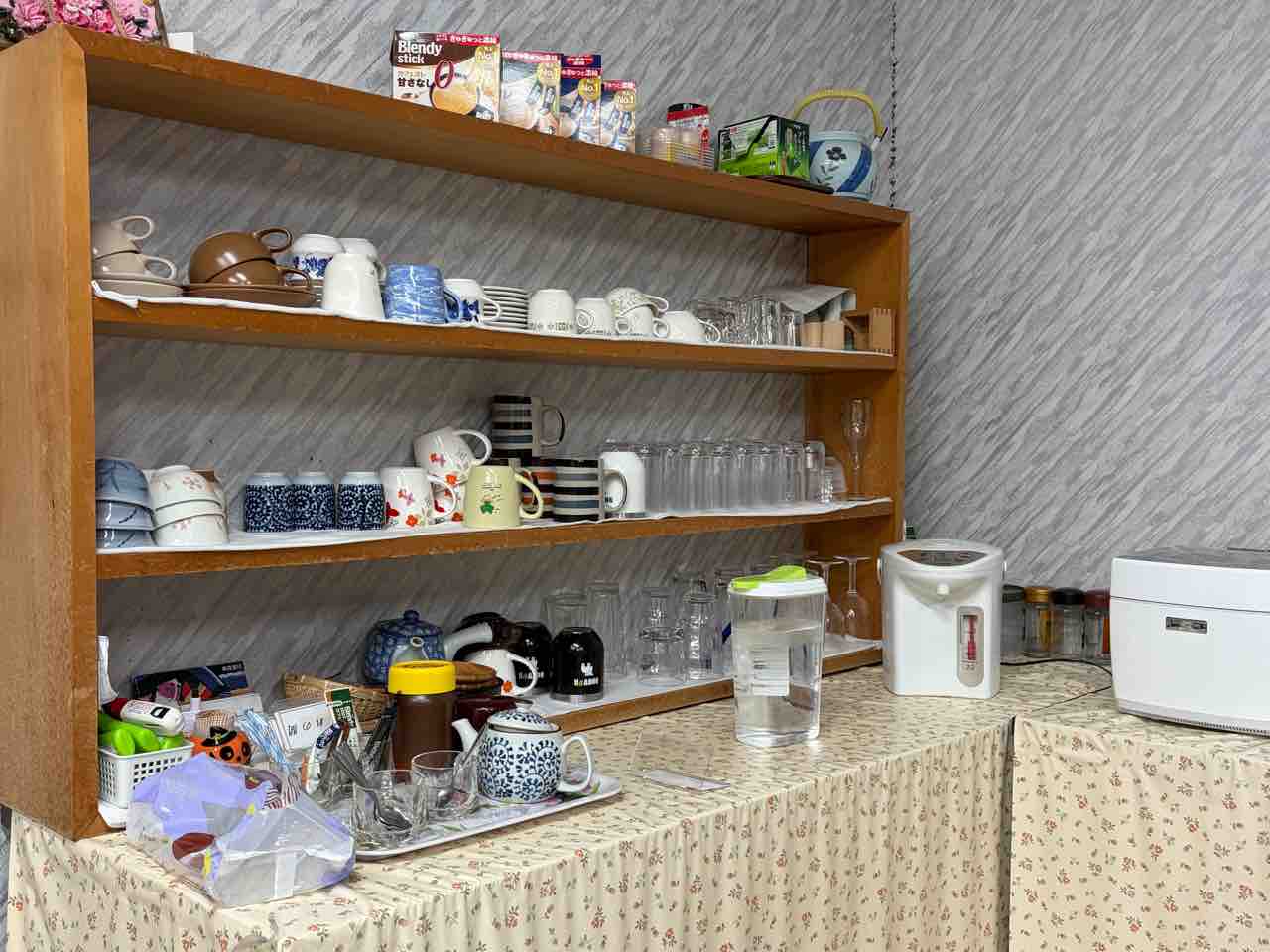 水、お茶、コーヒーもセルフサービスでした