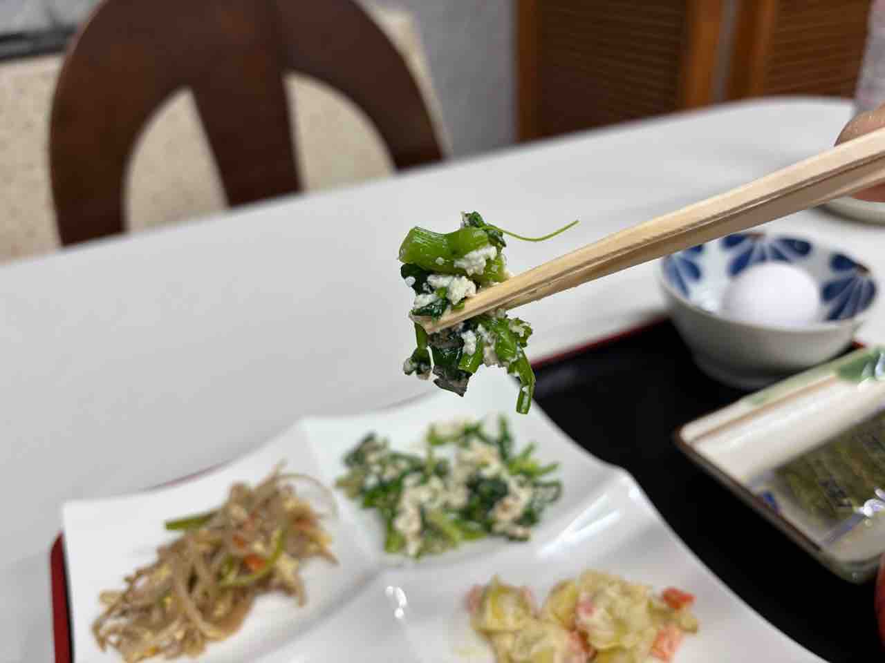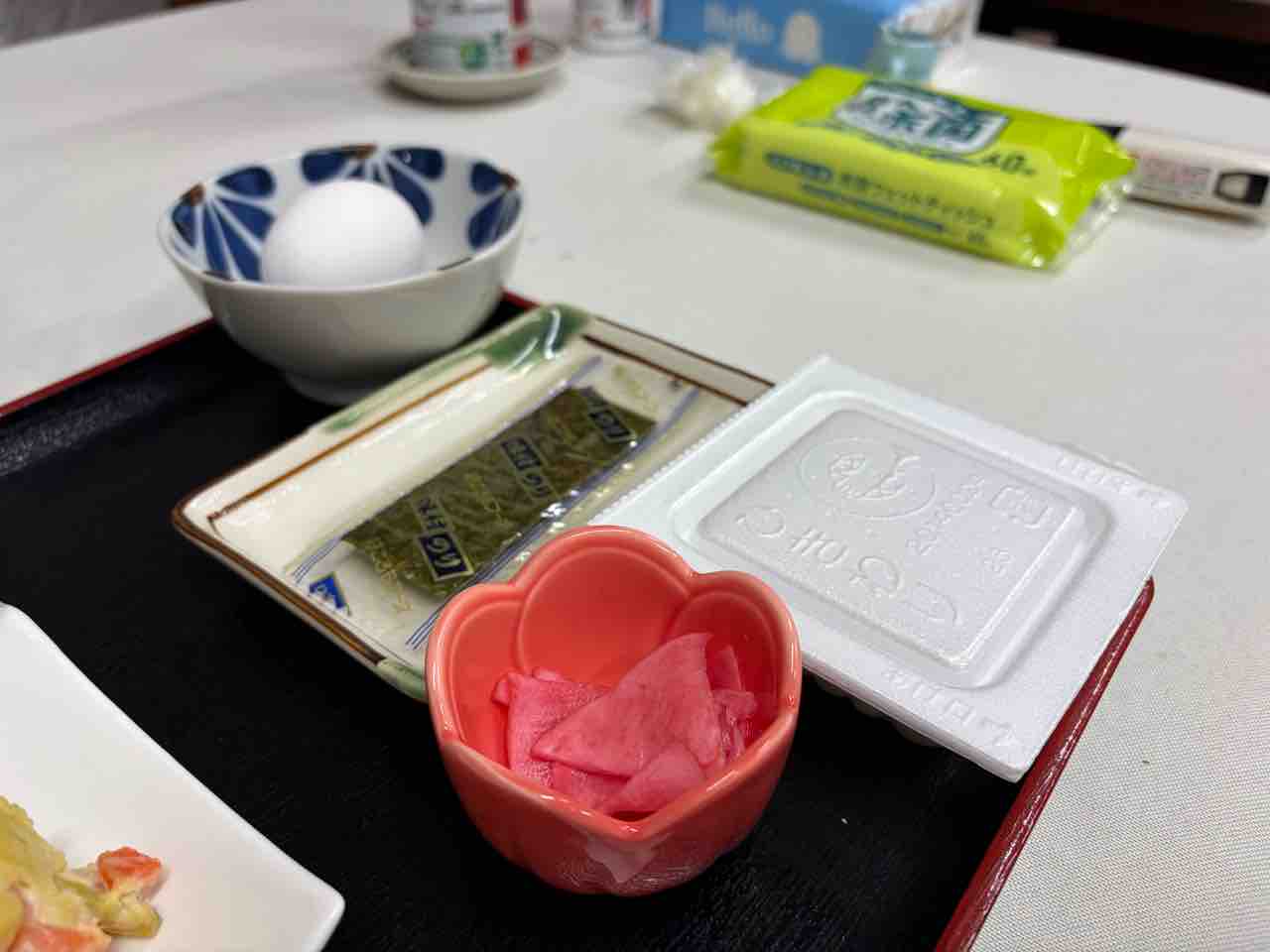 生卵、味付けのり、納豆、千枚漬け以上の内容となります。