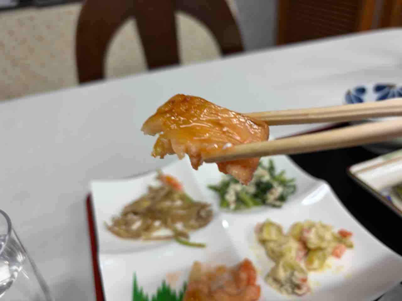 鮭はハラスの部分なのか脂がジューシーで美味い!ご飯が進みますね