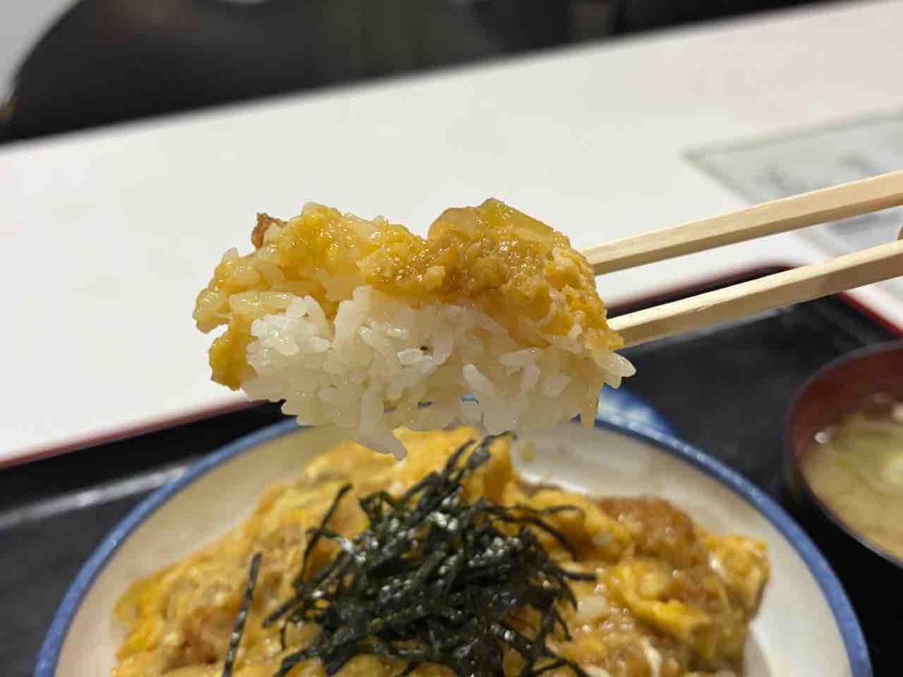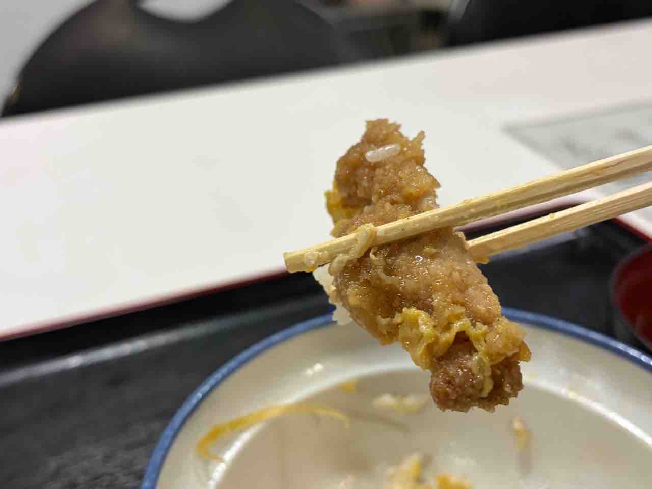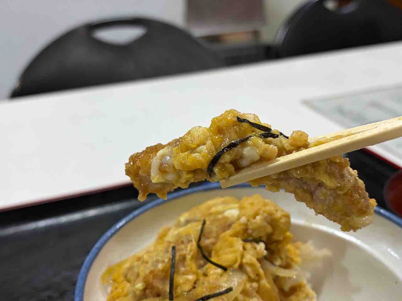 先ずは豚カツをパクりと頂くと 甘い味つけ&結構濃いめで… 個人的に好きなカツ丼でバリバリ美味い!