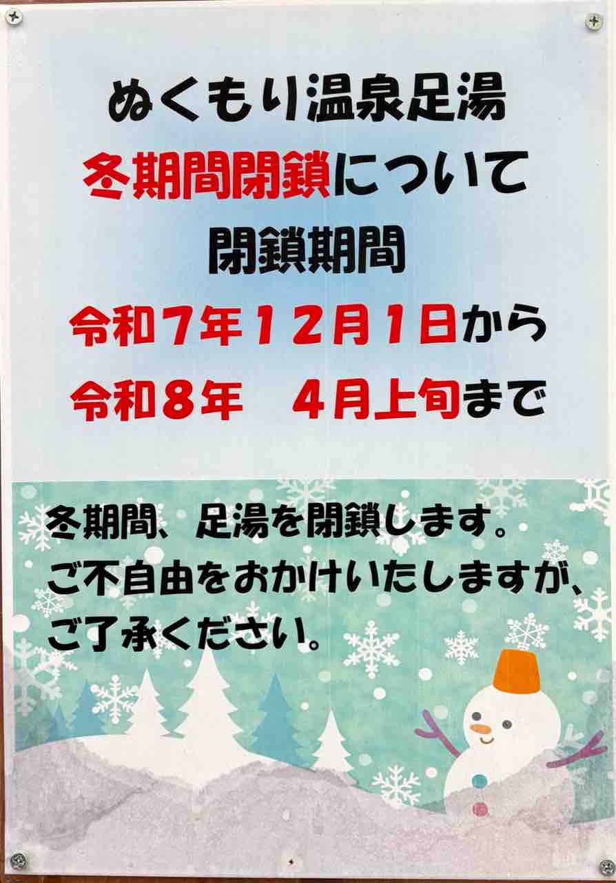 駐車場からテクテク歩くと足湯は冬季間は閉鎖でした