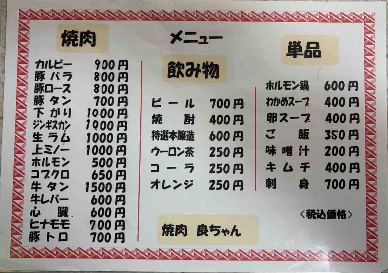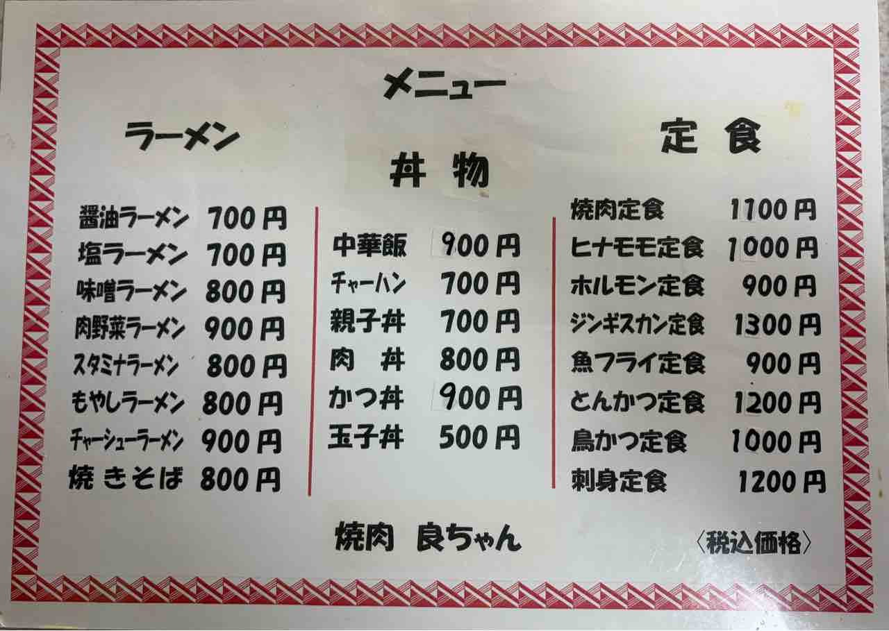 久しぶりに訪れた 焼肉•ラーメン良ちゃん。大将元気にしているかな そんな事を思いつつ入店します