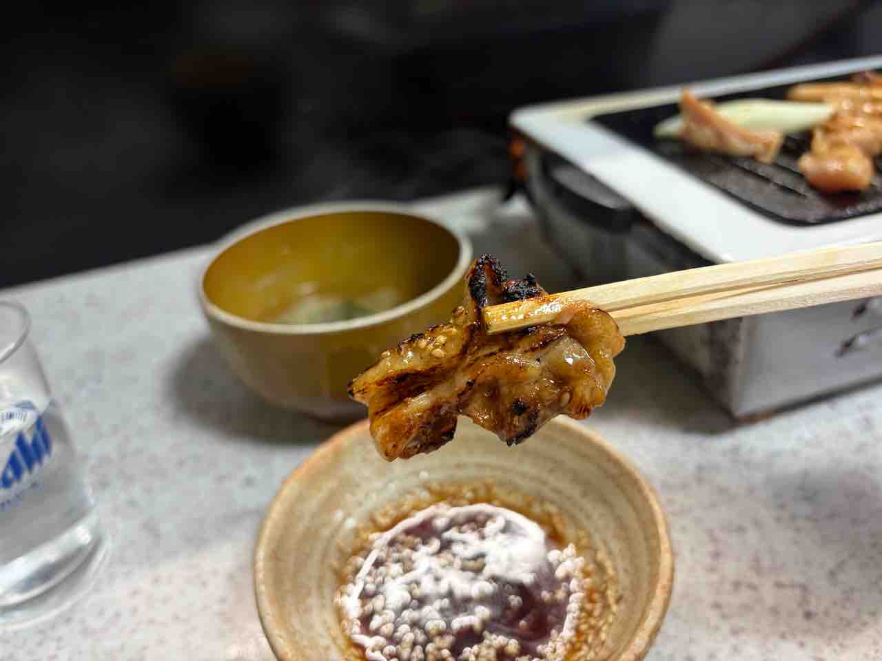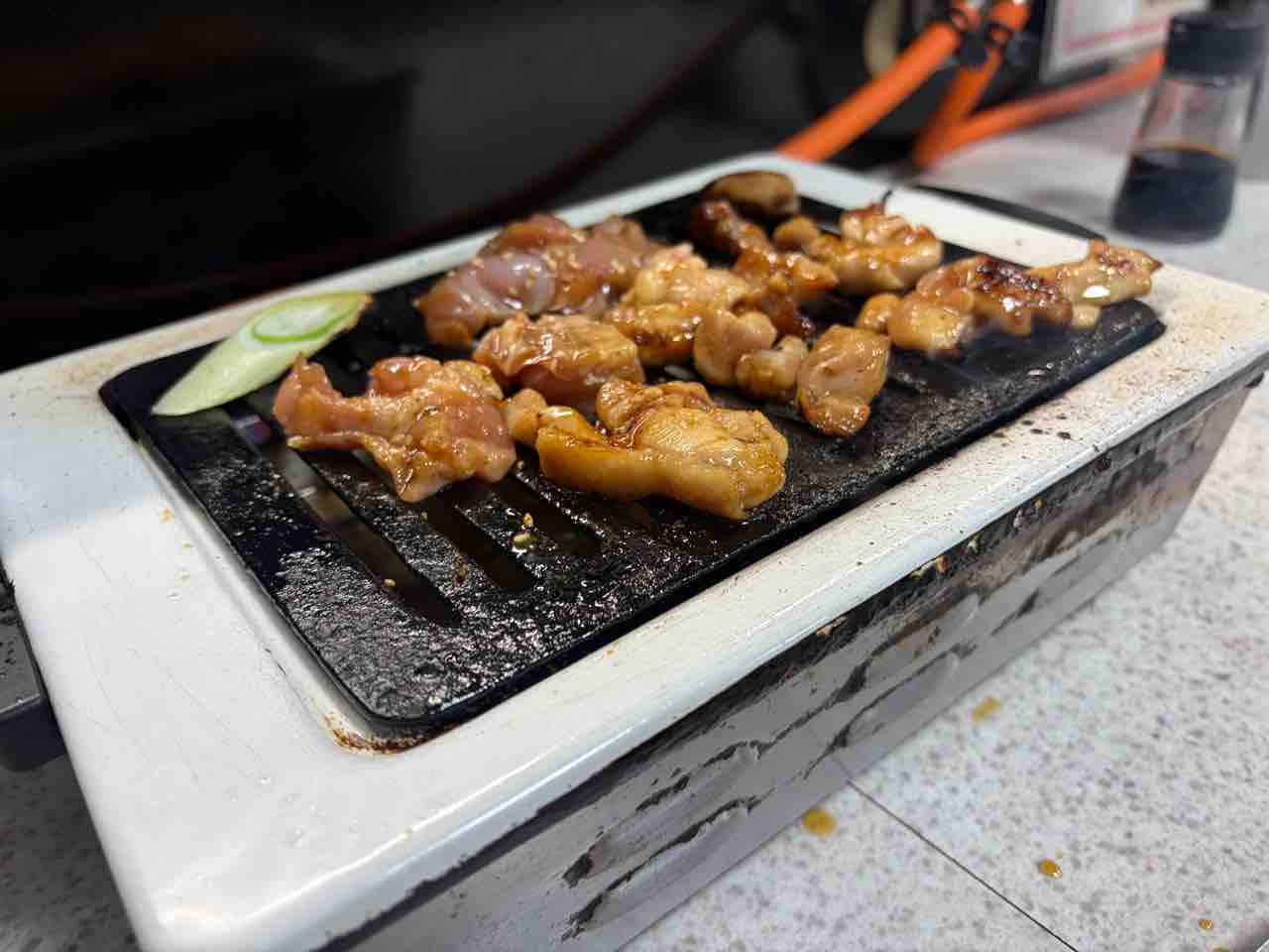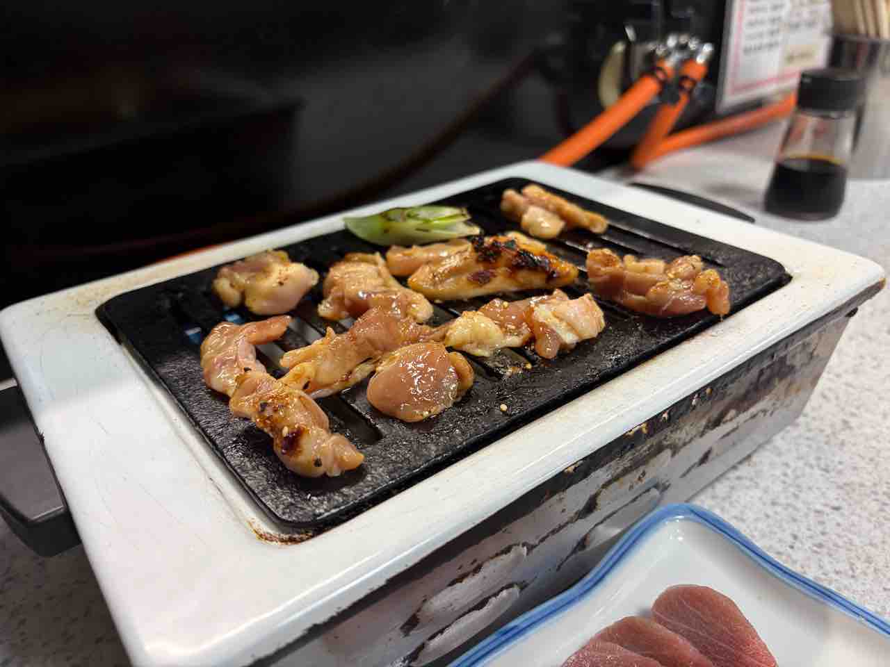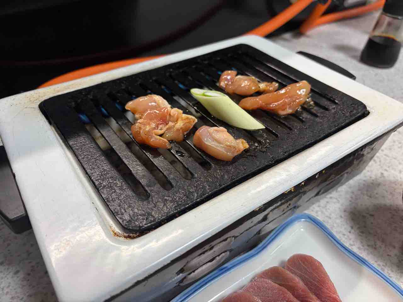 そして コンロの上に鶏肉と長ネギを置いて焼いていく!