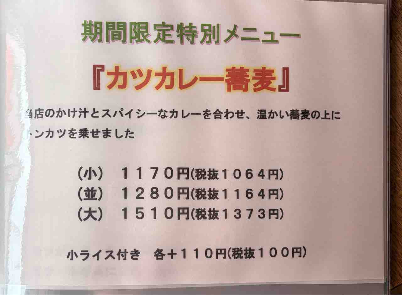 メニューは沢山あるのですが今回は カツカレー蕎麦 並盛(¥1,280)こちらをオーダーしたいと思います