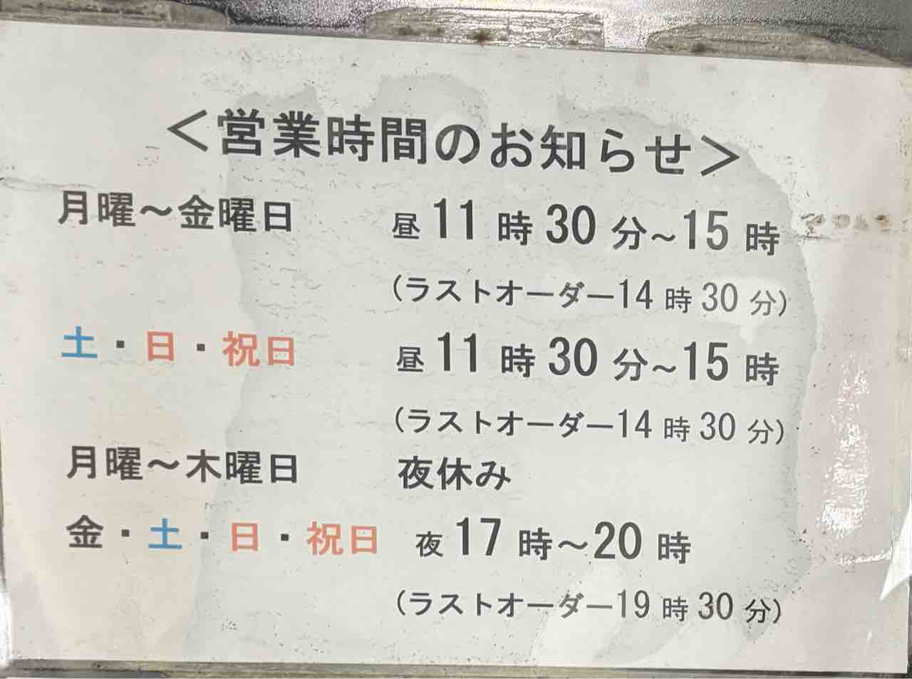 営業時間 11時〜15時、17時〜20時(金土日祝)