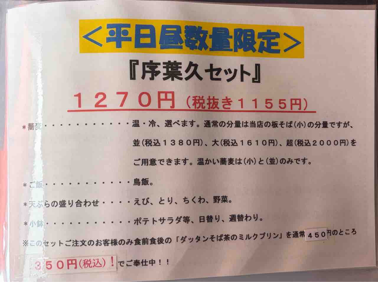 とある日のランチに七飯町大川にある 板そば•序葉久さんに伺って参りました