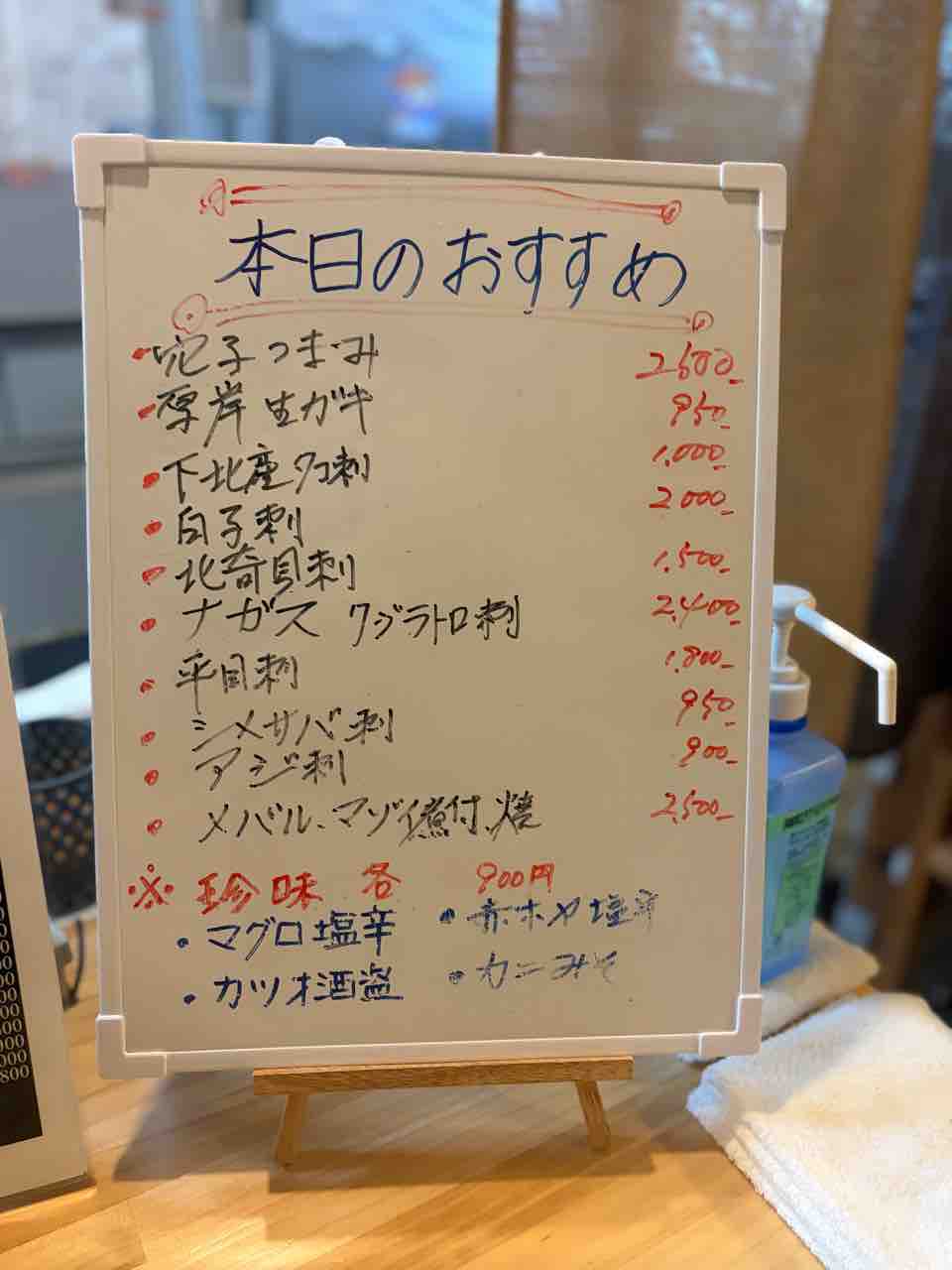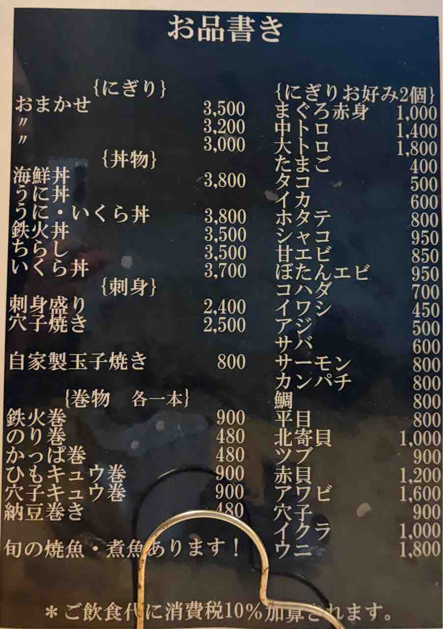 予約無しで伺いましたがカウンター席が空いていたのそれに座り お品書き
