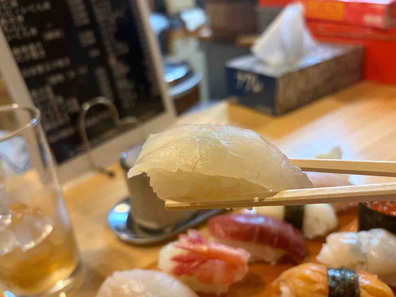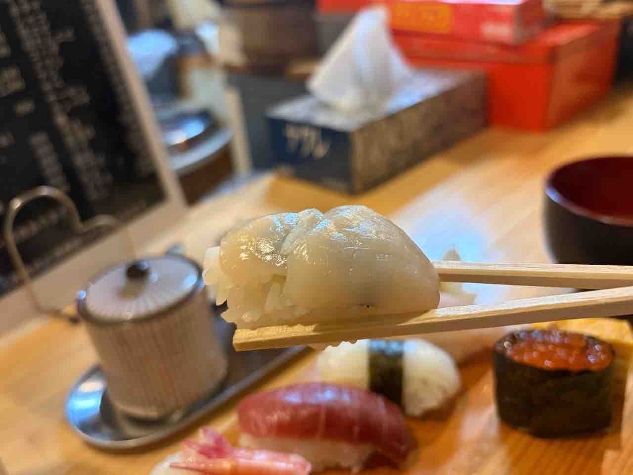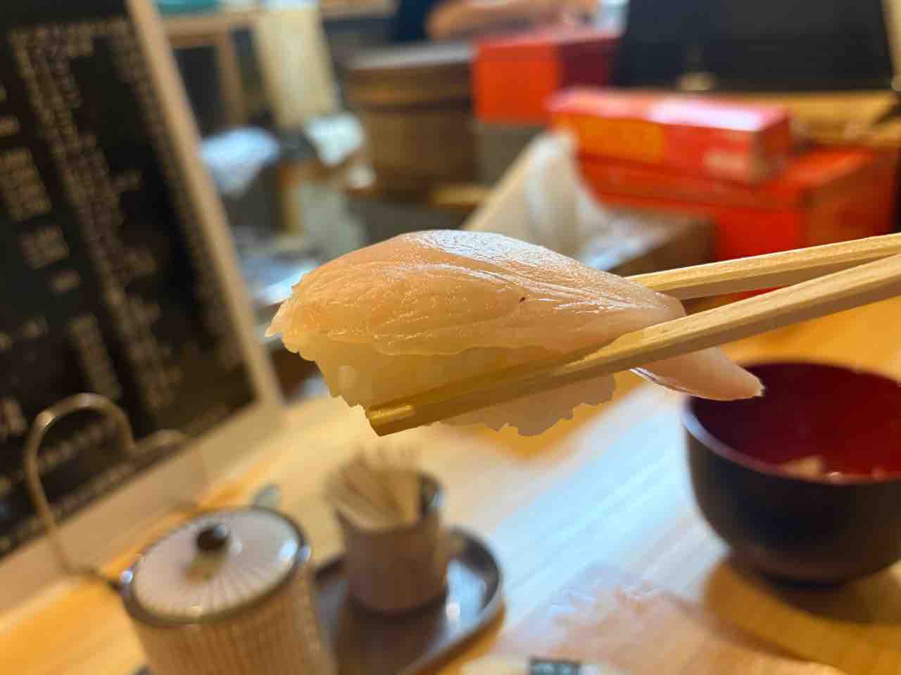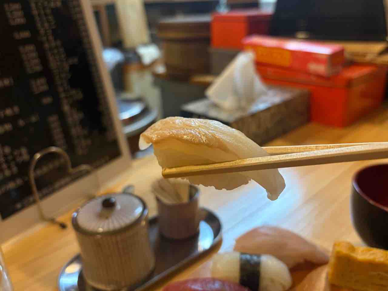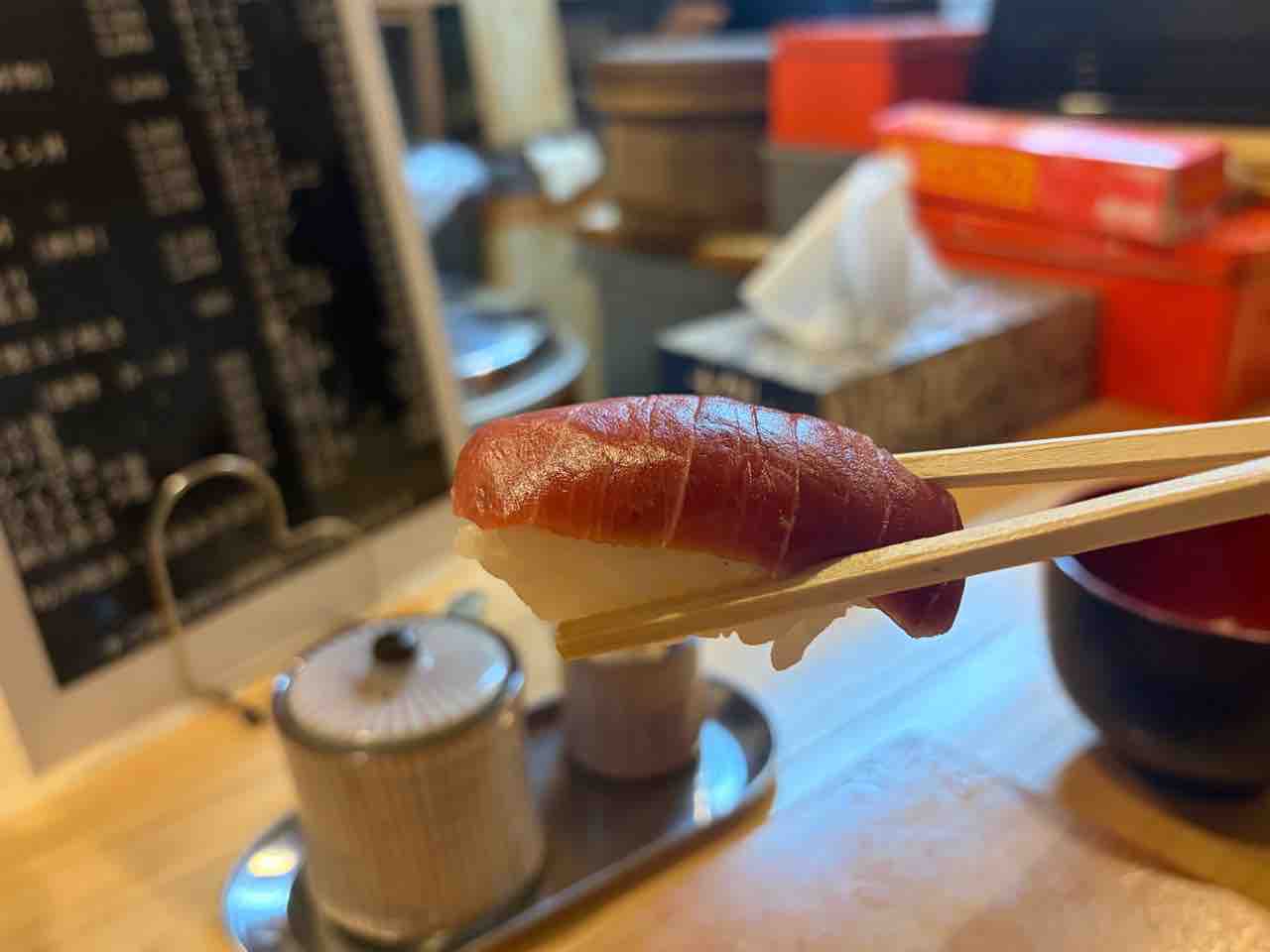 早速頂きたいと思います。先ずは鮪の赤身をキメる… シャリは少しウェット感ある酢飯ですが鮪の酸味と旨味と相性良くて美味いな!ですが酢はちょっと弱めかも