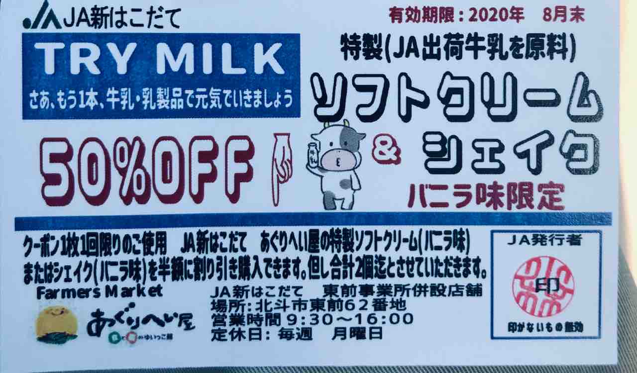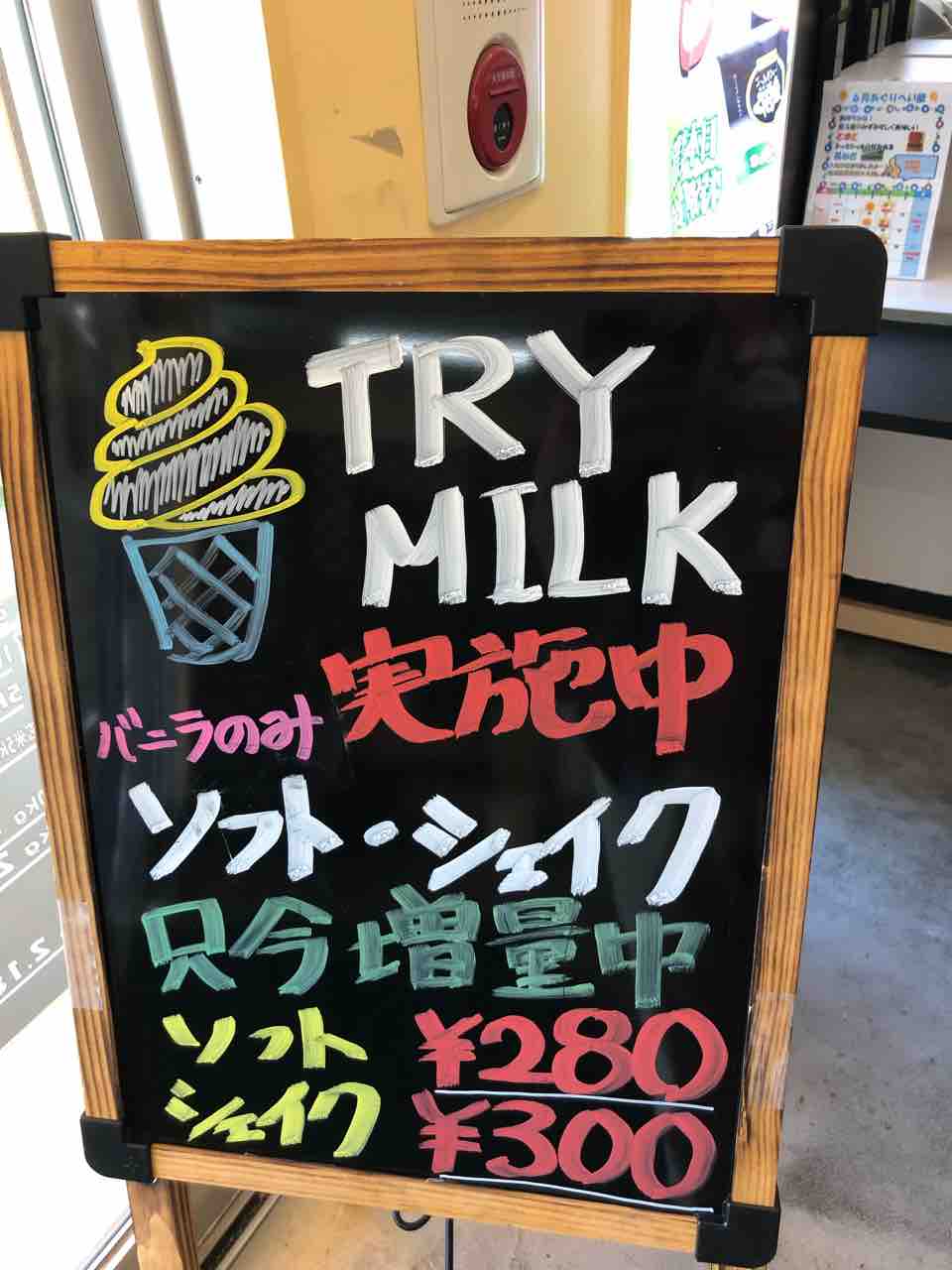 8月末までバニラ味ソフトクリーム、シェイクが25〜30%増量中との事です。お得です。