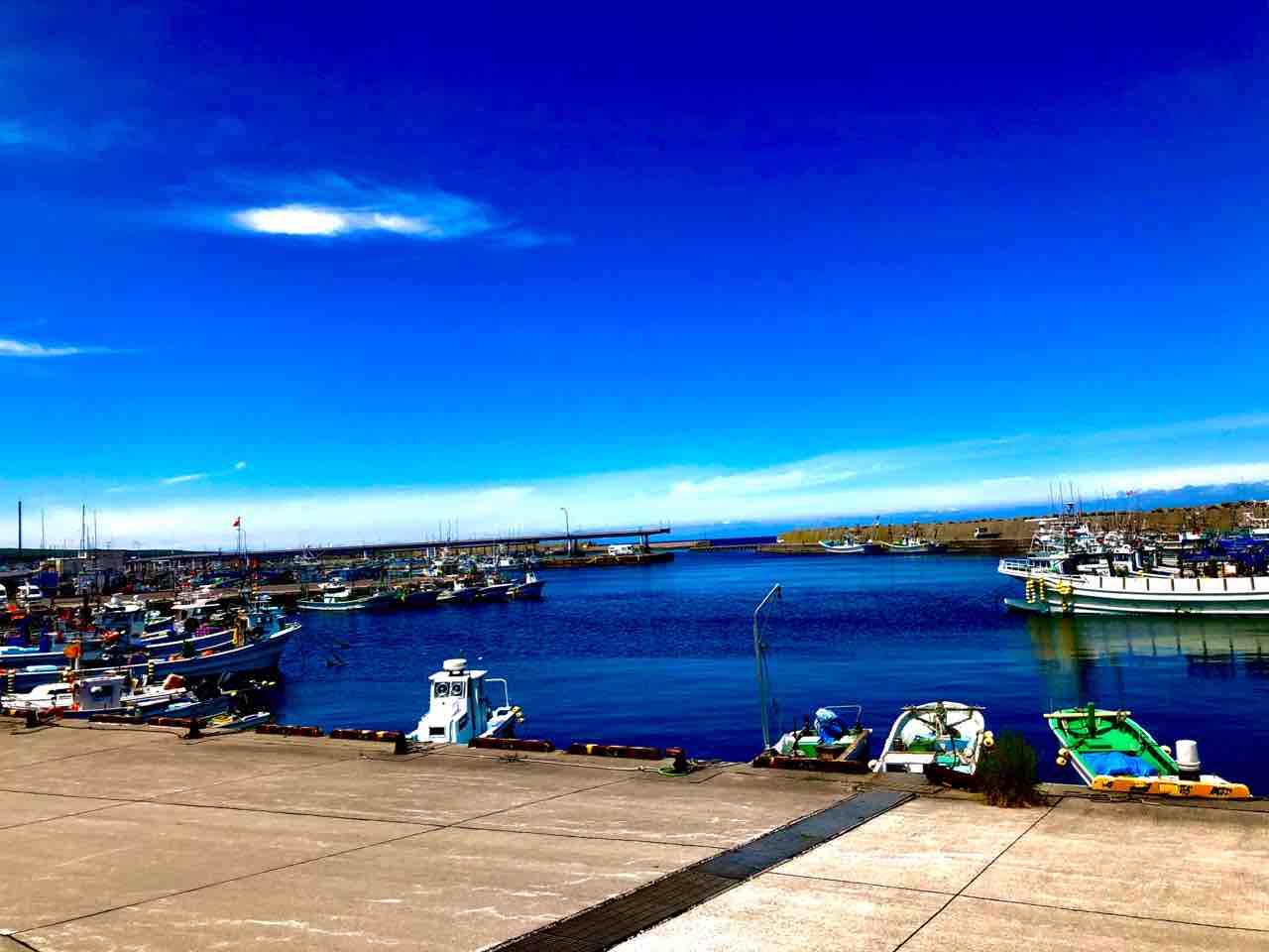 臨時駐車場の向かいに鹿部漁港がありまして