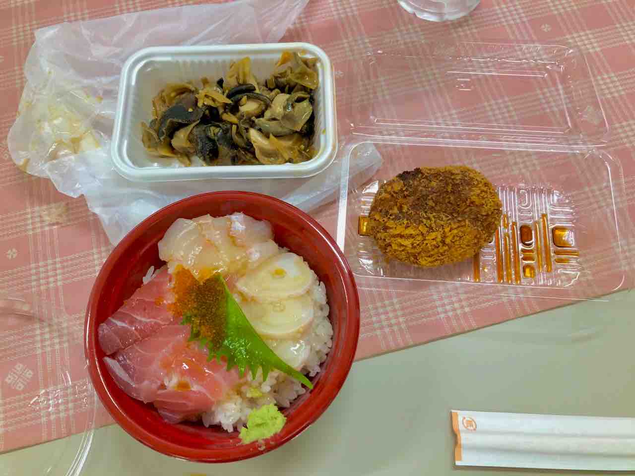 海鮮丼と芋コロッケを購入しました。