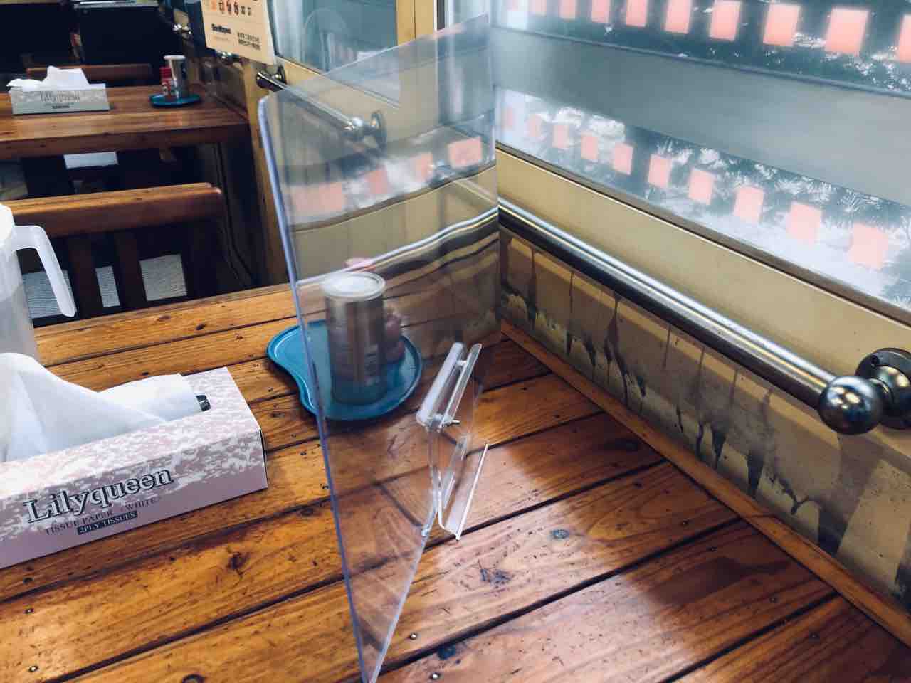 そしてテーブルの前にはコロナの影響で設置されたと思われる飛沫ガードパネルもあります。