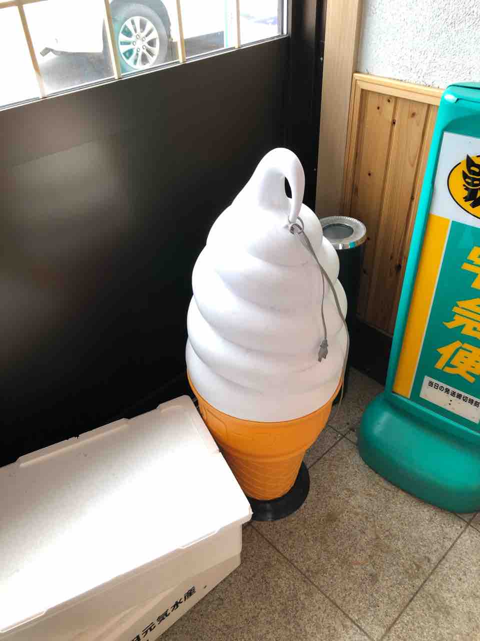 ソフトクリームのモニュメントは入り口の影に存在してました。