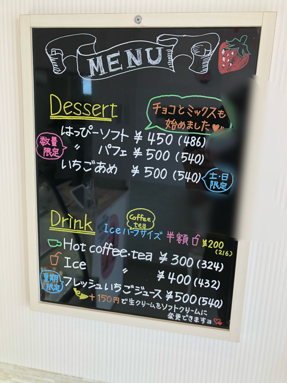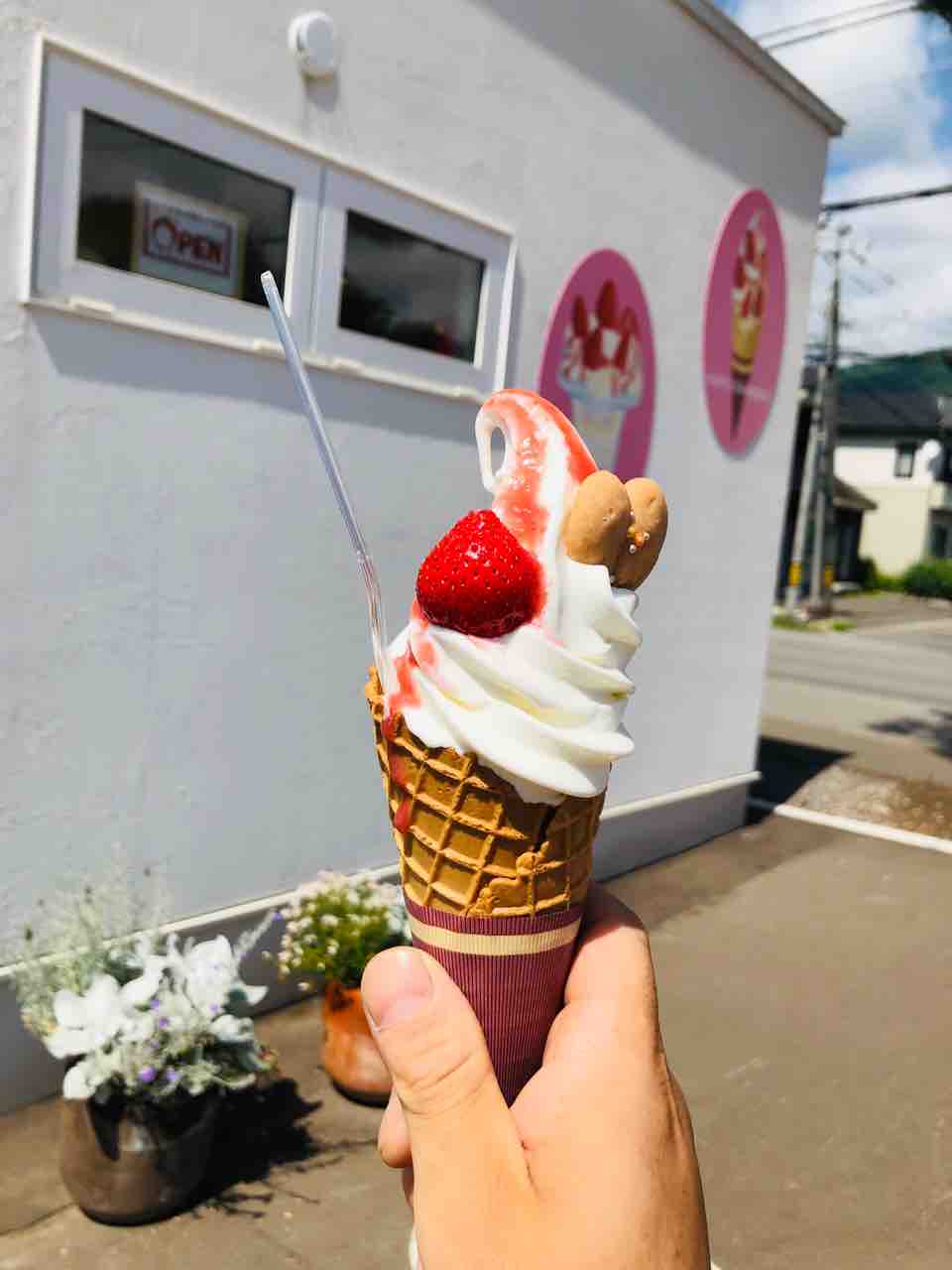 七飯町 上藤城の はっぴーストロベリーさんのソフトクリームを食べてきました! 2020年08月04日 暑い暑い暑い日が続くと冷たい物欲しくなりますよね。という事で ソフトクリーム食べたいなと思いまして七飯町上藤城にあるはっぴーストロベリーさんに伺ってきました。所在地 北海道亀田郡七飯町上藤城3-69営業時間 10時〜16時定休日 水曜日電話番号 0138-64-1515駐車場 多数有地図は こちらから店舗外観です。ロゴです。ケーキ、ロールケーキ等販売してます。価格帯は少し高めです。苺尽くしな店内です。店名の通りですね。メニュー表です。汚らわしいものが写っていたのでモザイク処理は欠かしません。そして購入したソフトクリームは ヴァニラのはっぴーソフト