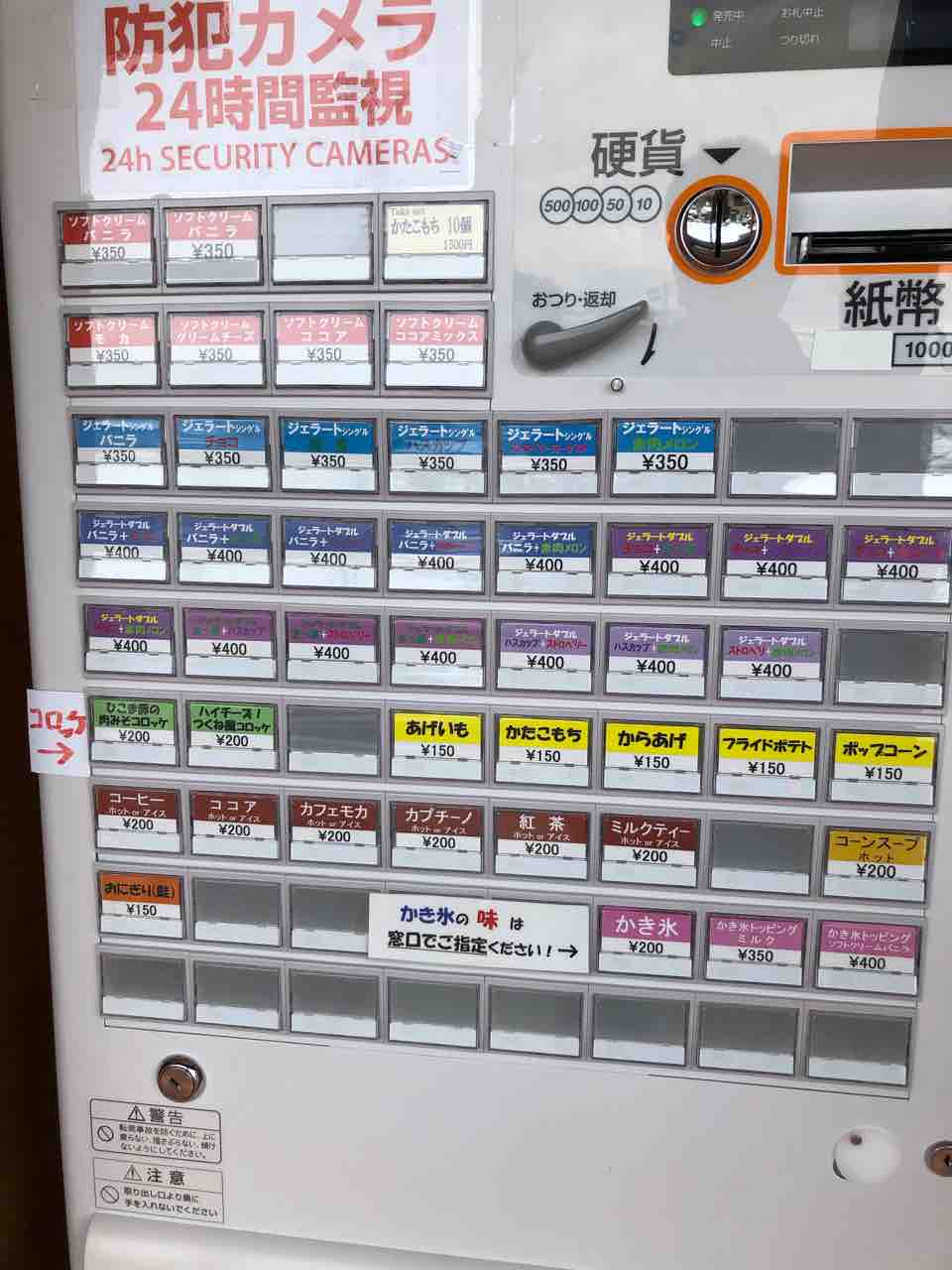 揚げいもを買おうと食券機の前に立つも、揚げ芋の他に ソフトクリームも購入してしまいました。
