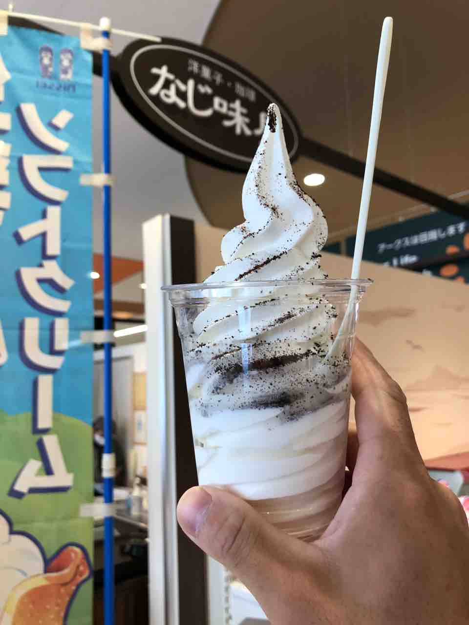 なじ味屋 さんで ソフトクリームを食べる事にしました。