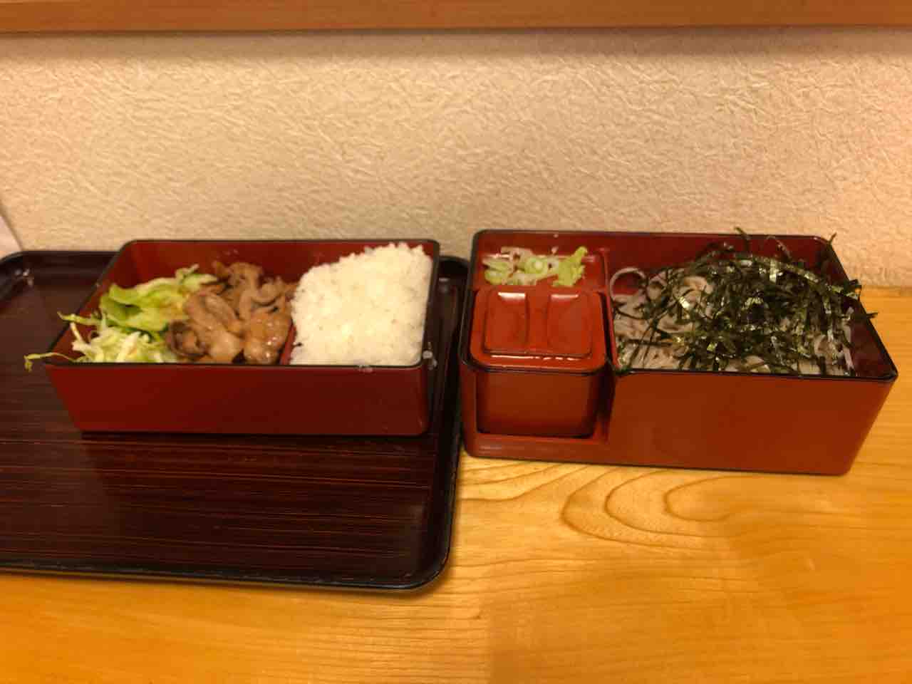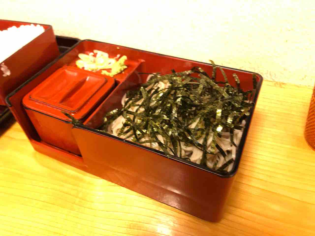 下の段には お蕎麦と蕎麦つゆ、薬味が入ってました。