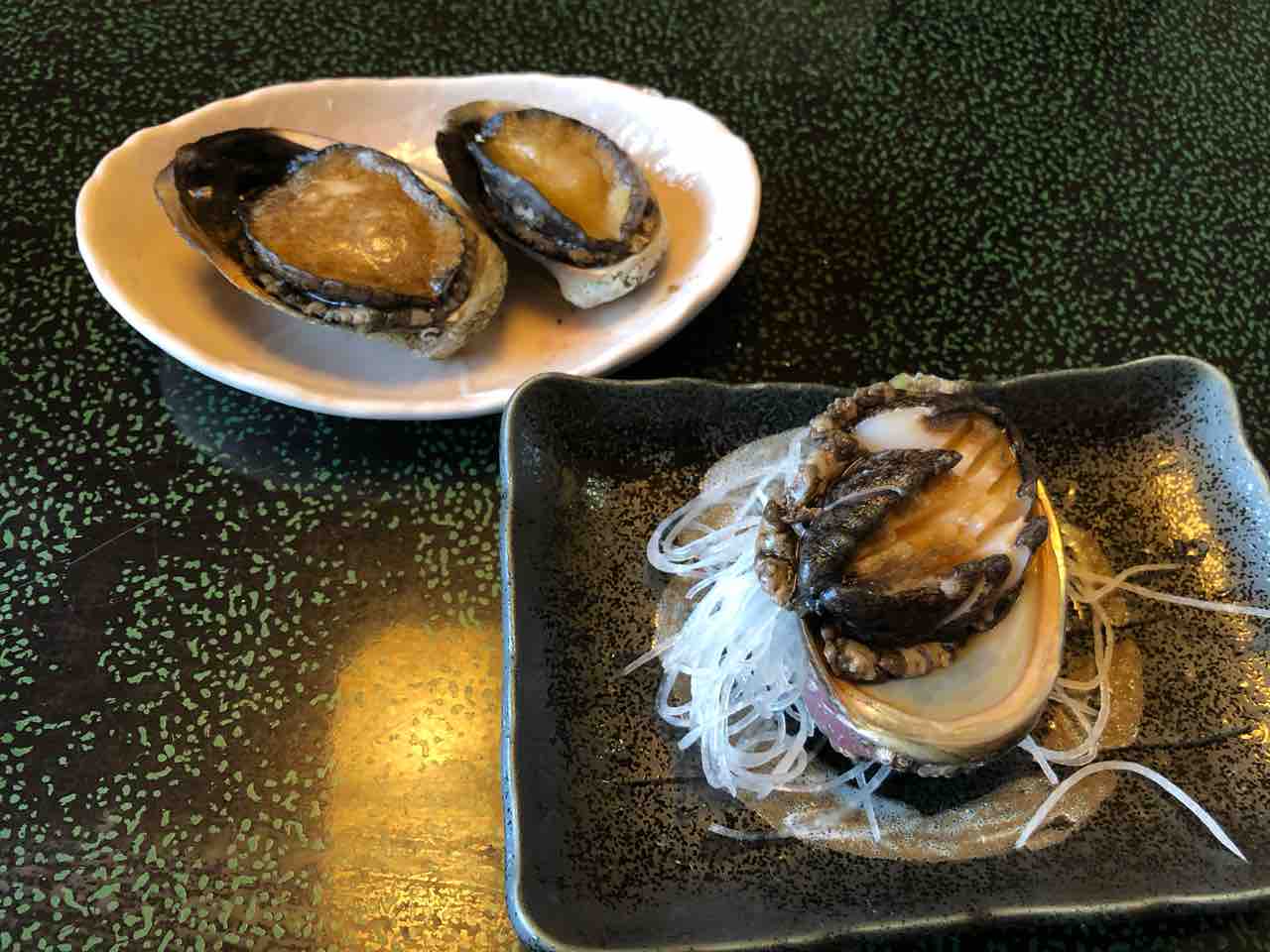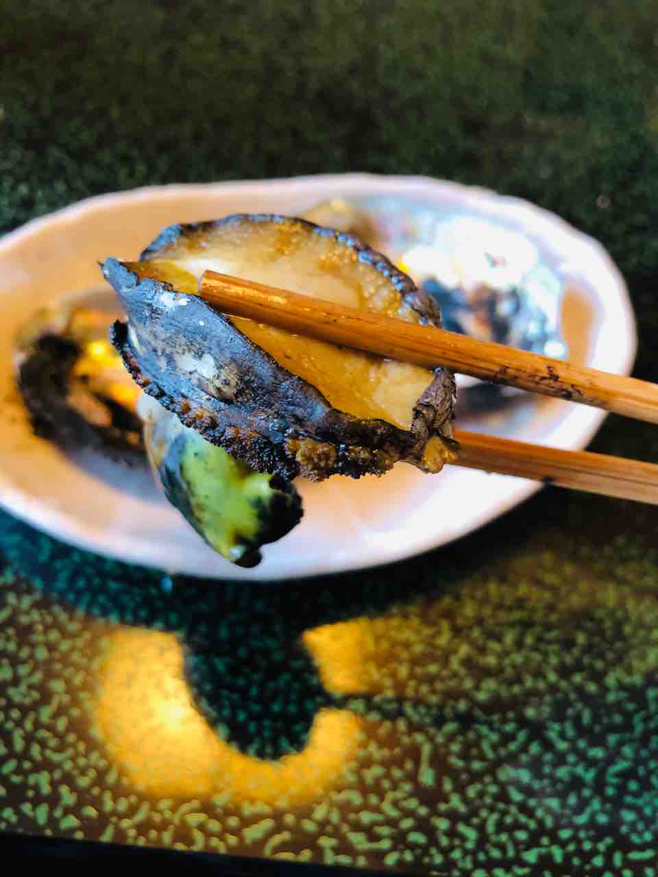 鮑の香り 磯の香りがなんともいえなく食欲をそそります。火を通すとコリコリ食感から柔らかくなり本当に美味しいんですよね。肝も美味しくて食べている最中は至福のひと時です。