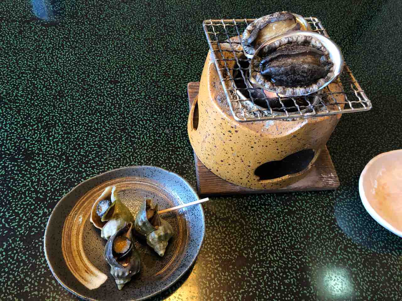 鮑のお造りと 焼き終えた鮑です。
