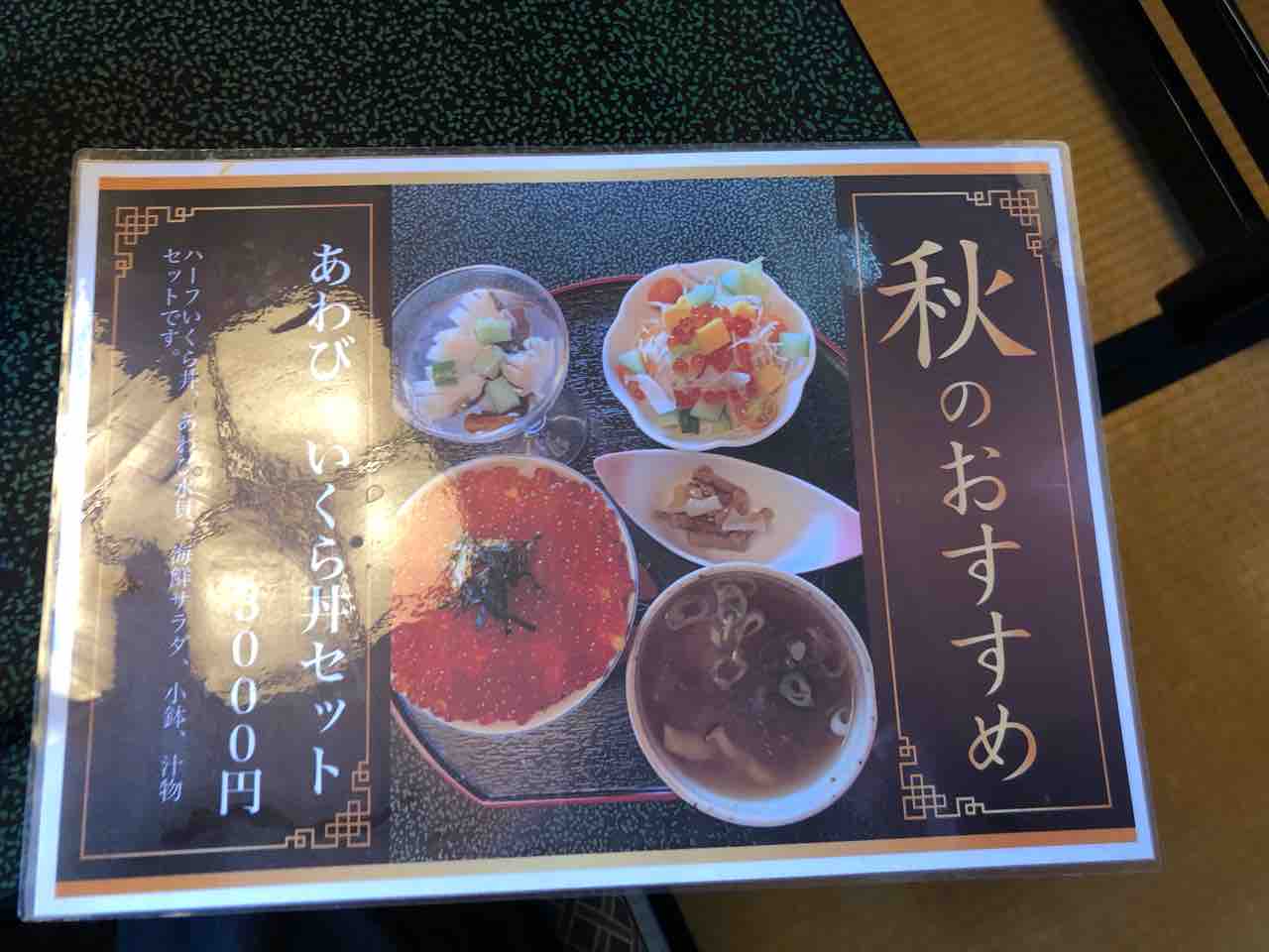 秋のお勧めメニューで、通常メニューは こちらから。