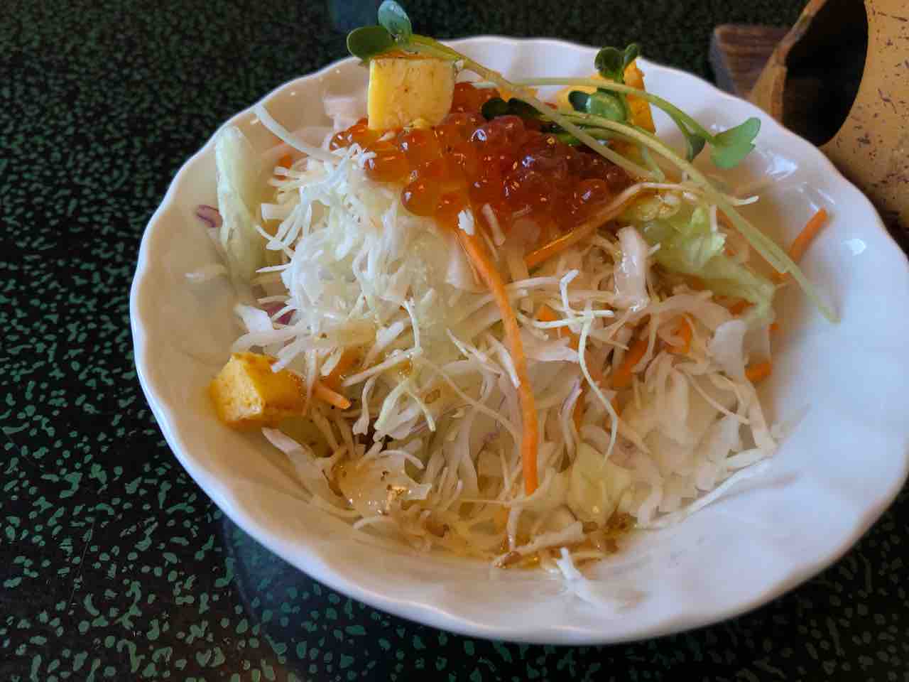 海鮮サラダでいくらが乗っていました。本当は大きな海老も乗っていたのですがシェアした後の写真で海老は写してなかったです。
