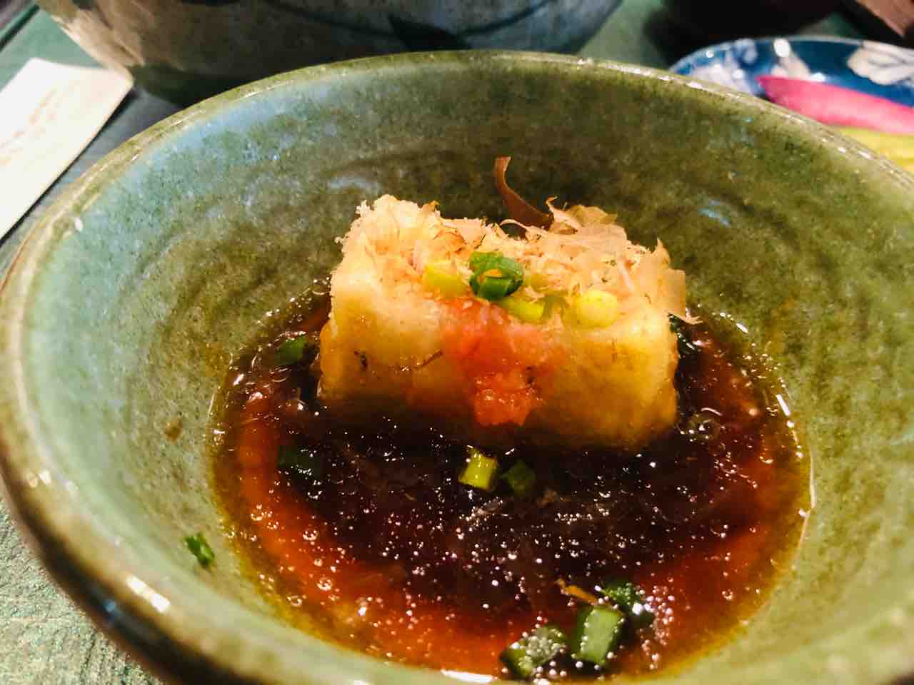 この揚げ出し豆腐が少しピリ辛っと辛いんですけど美味っ😆