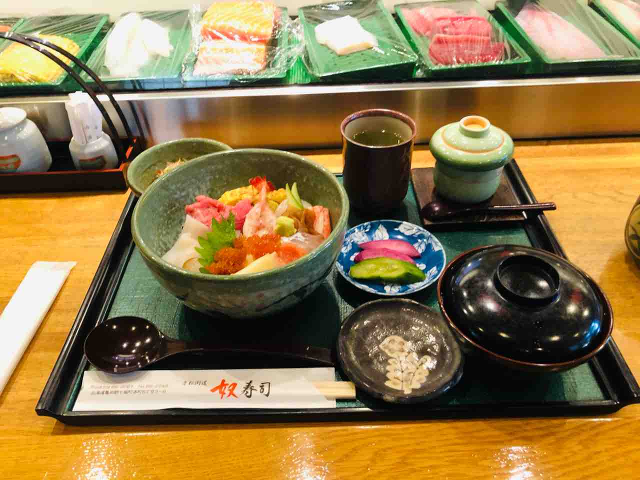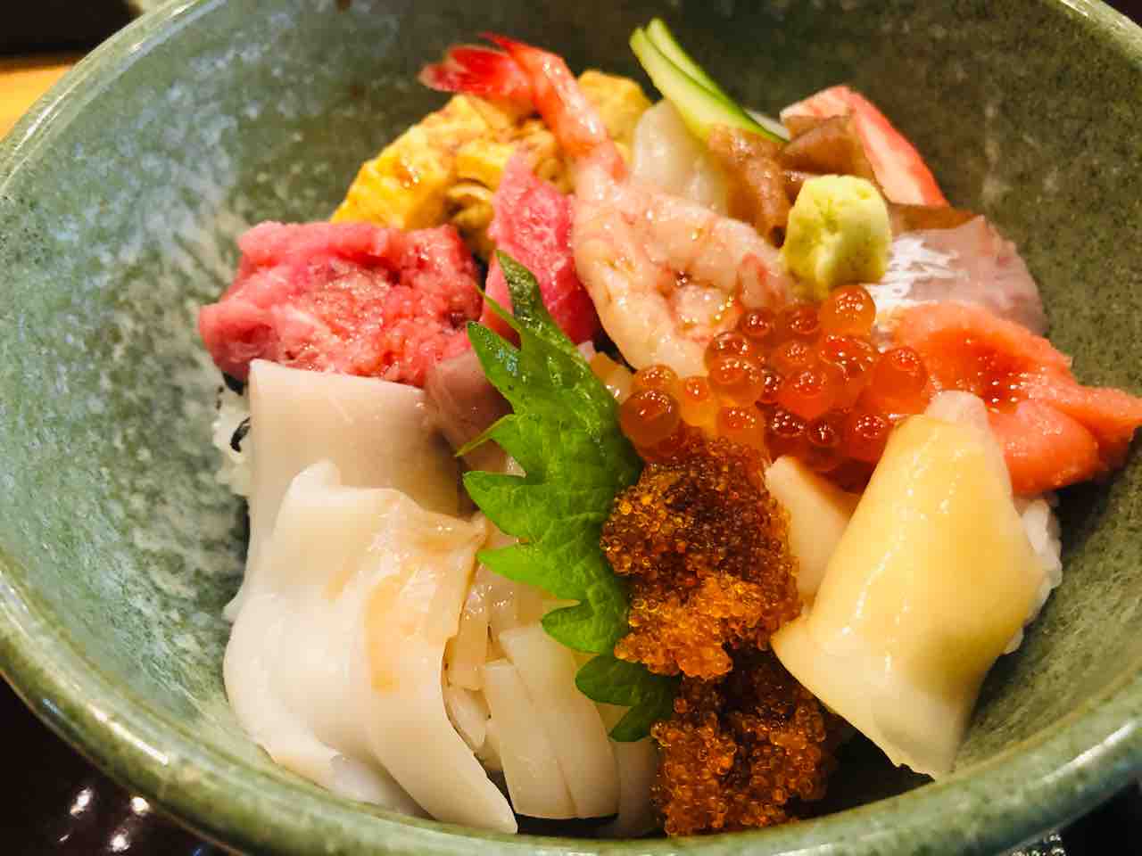 何故かタラコも入っている海鮮丼で、酢飯ではなく普通のご飯でした。