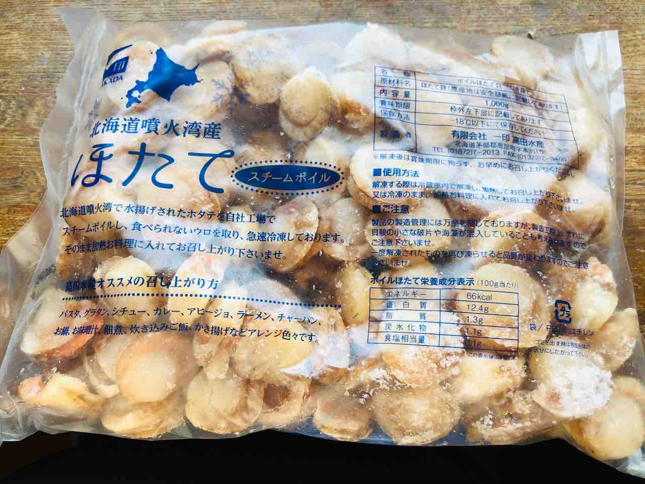 ボイルホタテも忘れてはいけません。スマホのフラッシュ機能を利用しカウンター前にあるPOPを撮れば 割引クーポンがあり通常より更に更にお安く求めることができます。