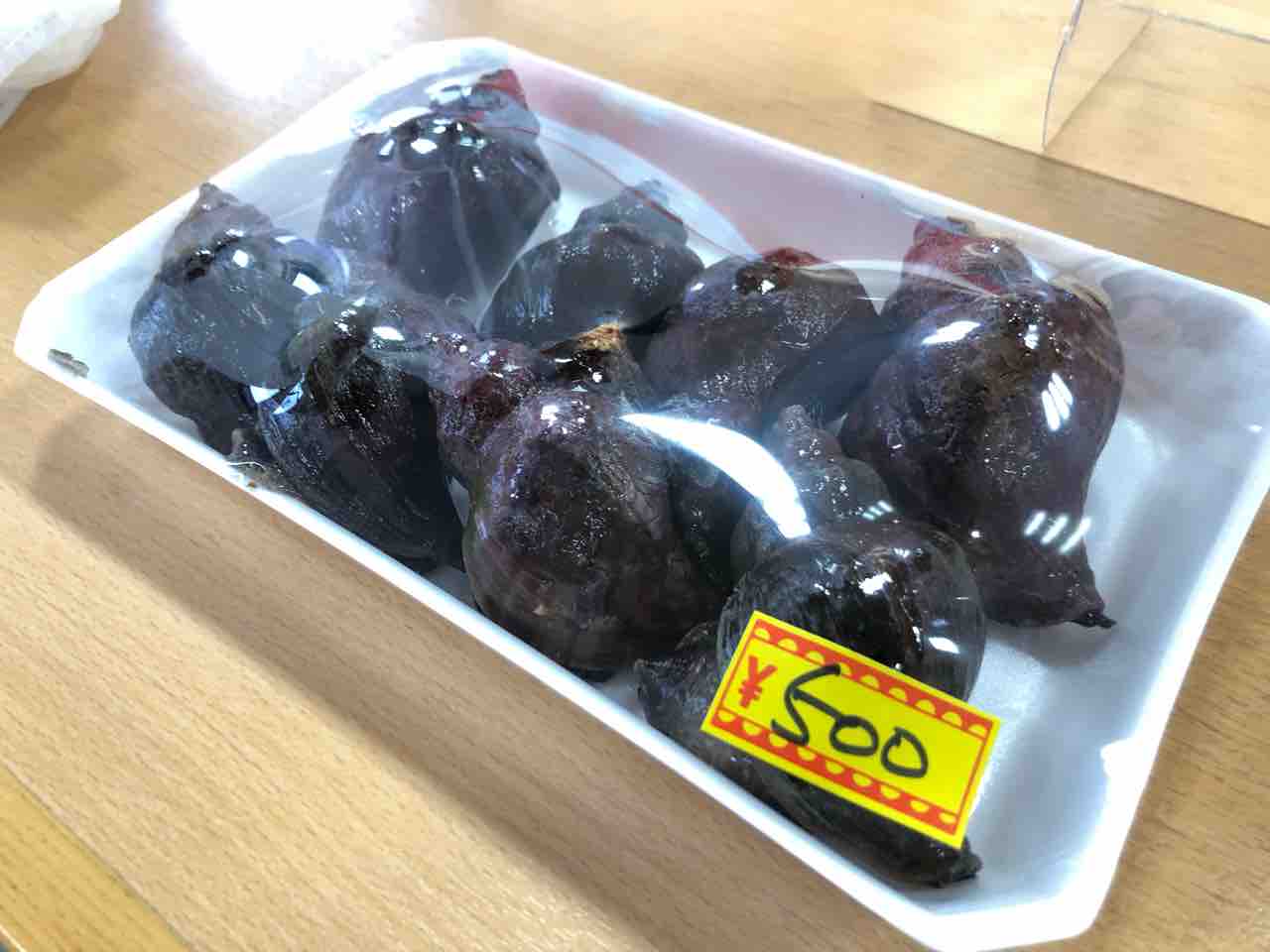 よく見ると青ツブもあったので1パック500円税込でしたので追加購入です。こちらが道の駅に在中していた時のパックです。