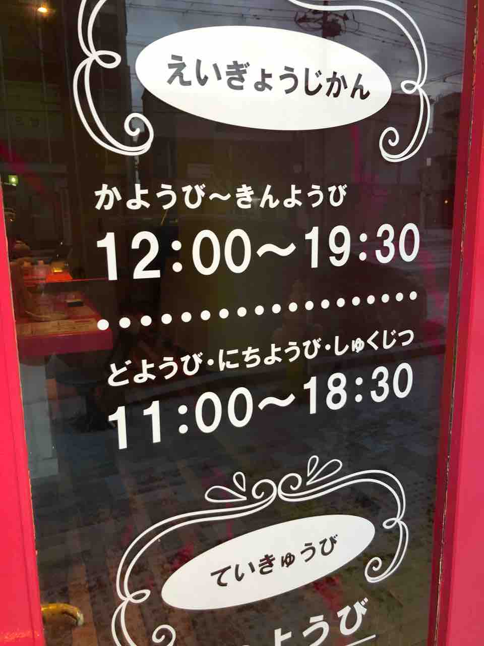 営業時間です。定休日は切れてしまっていますな月曜日です。