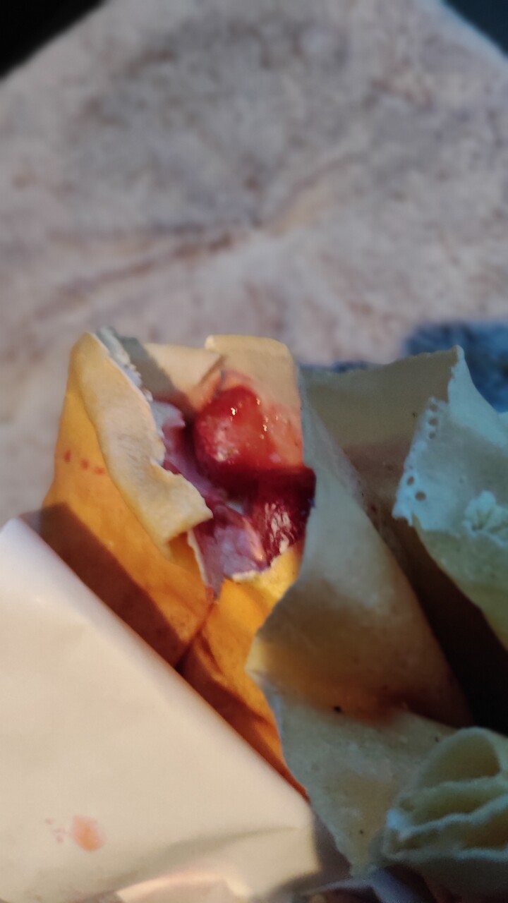 ちょっとだけクレープを捲り中身の確認をするとストロベリーはジャムではなくきちんと苺が入っておりました。