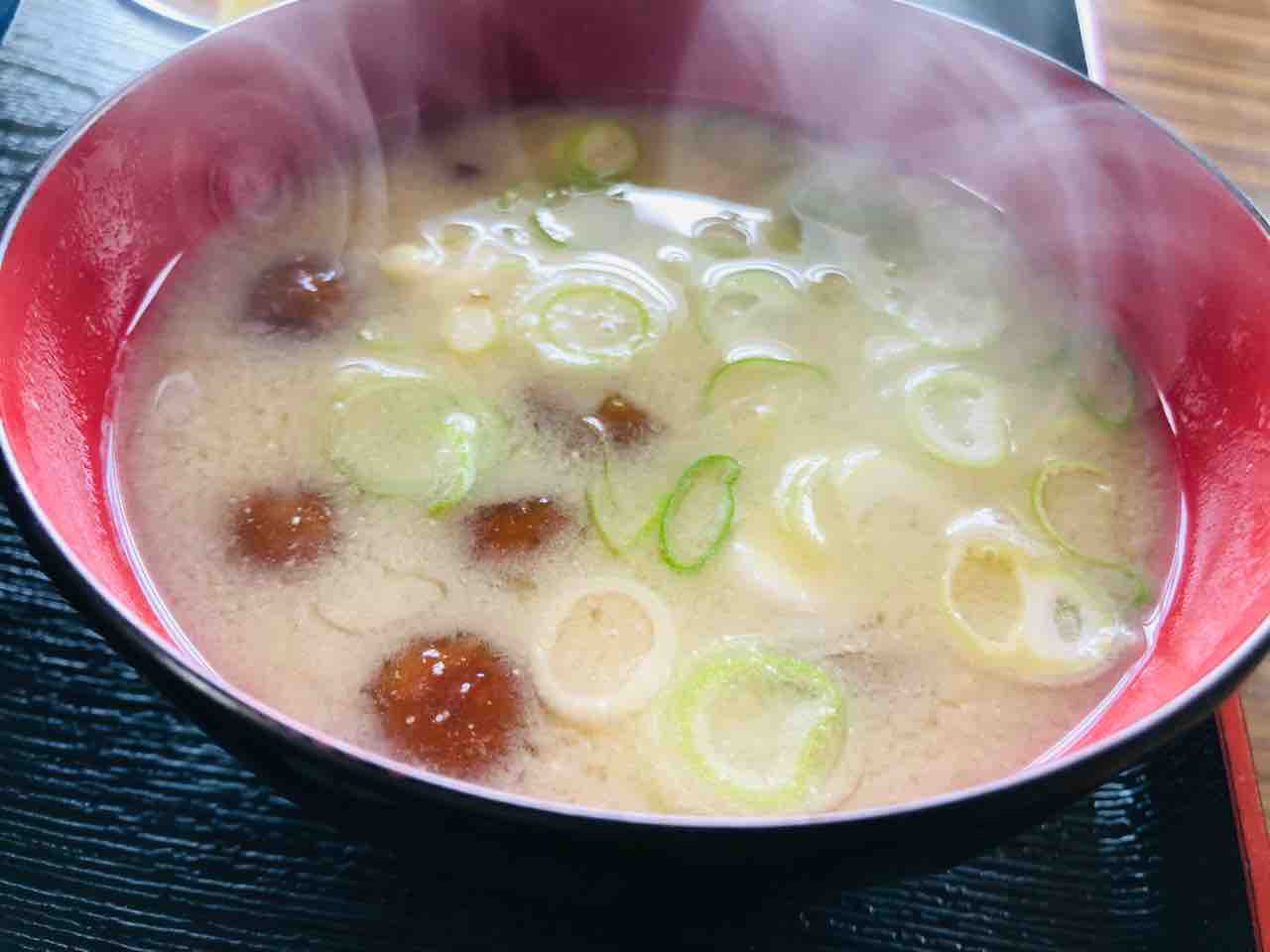 お味噌汁は豆腐、なめこ、長ネギとオーソドックスな味噌汁です。