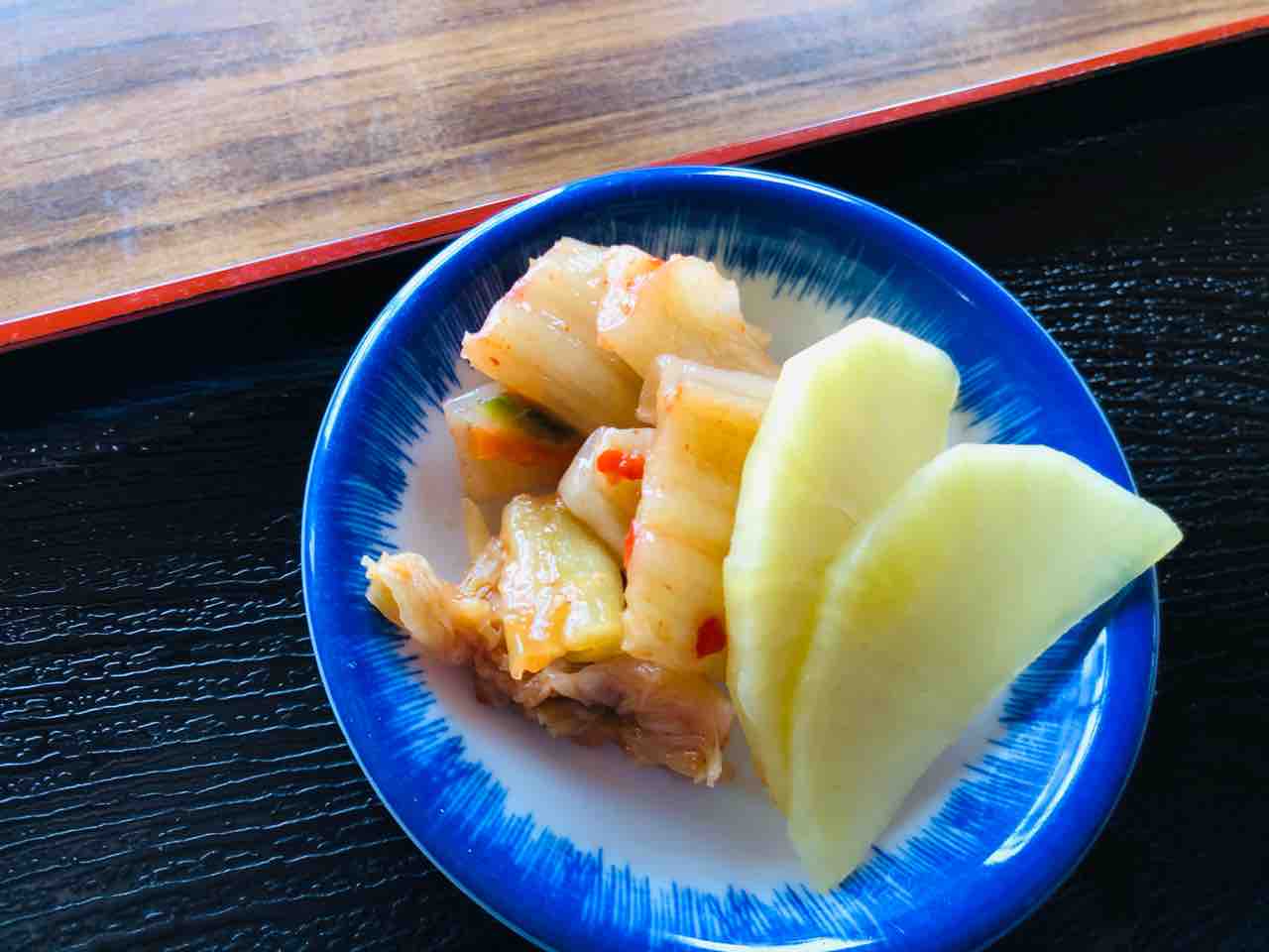 漬物は沢庵とキムチでキムチは酸っぱ辛い感じでカツ丼の箸休めとしてはベストでした。