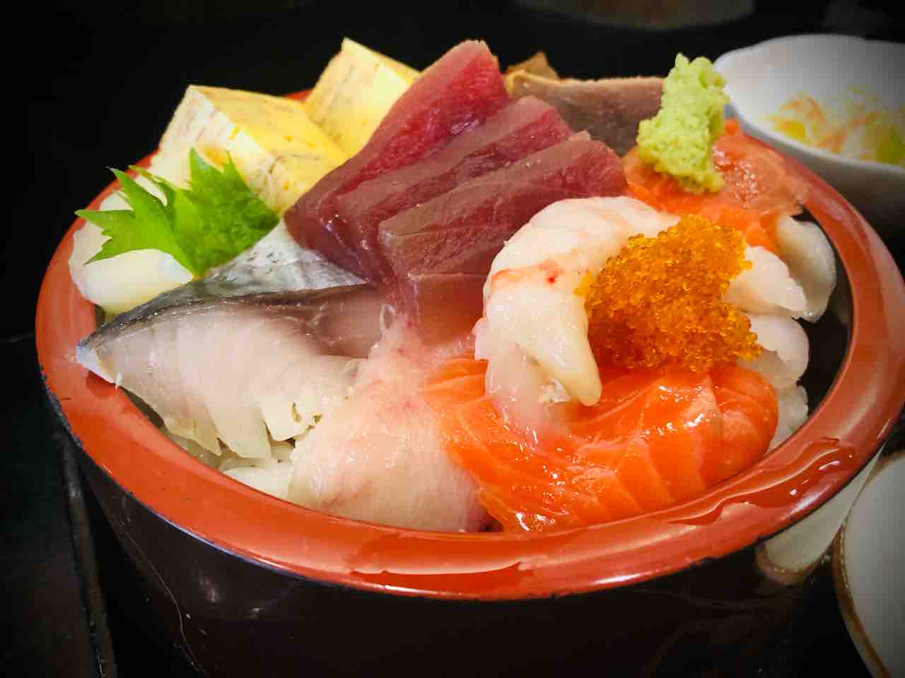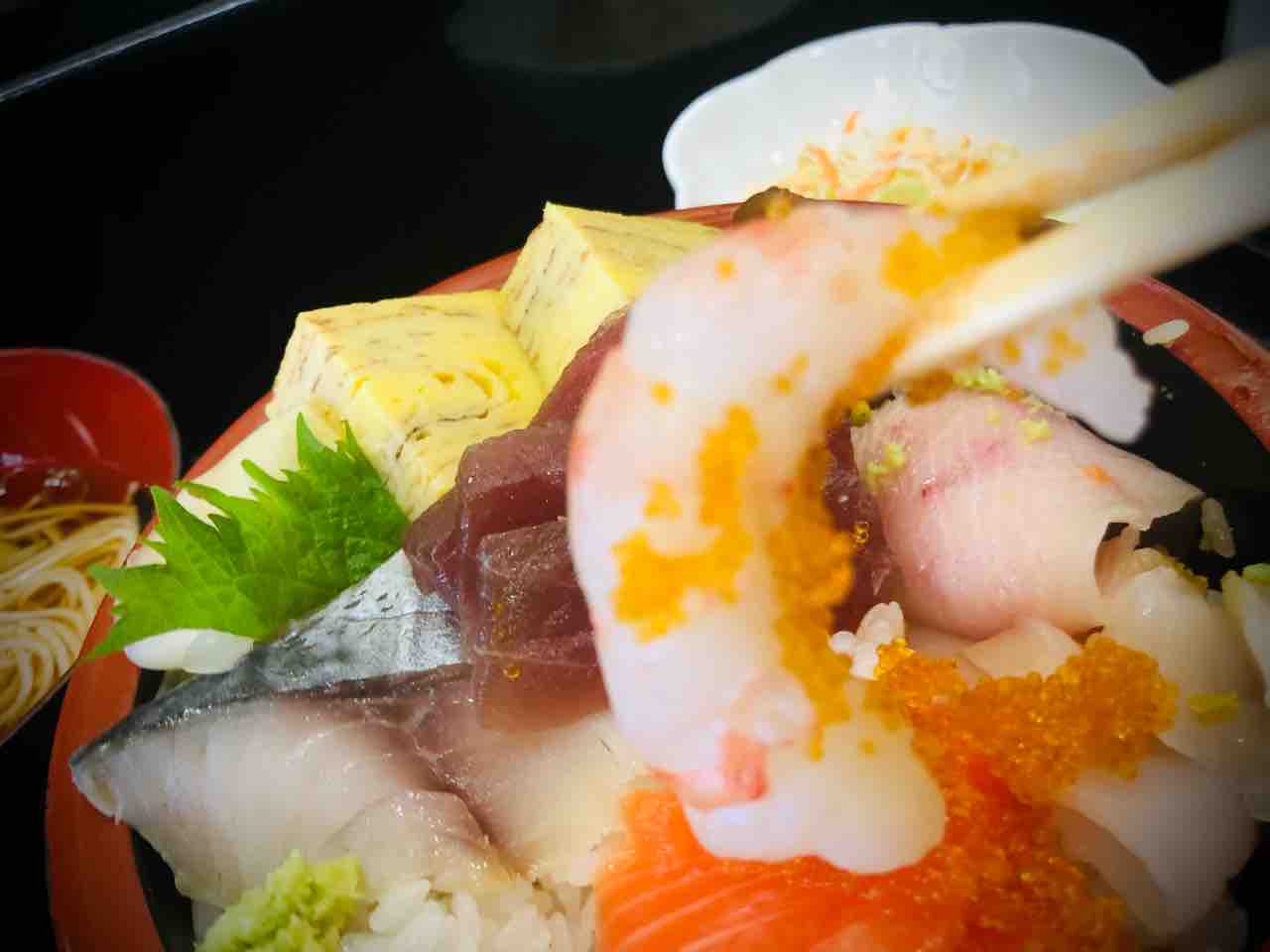上に乗っているものは 鮪、エビ、サーモン、しめ鯖、ハマチ、ホタテ、とびこ、玉子、干瓢、ガリです多分。具沢山です。