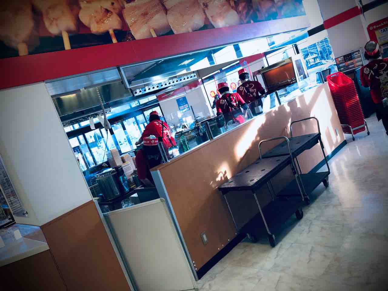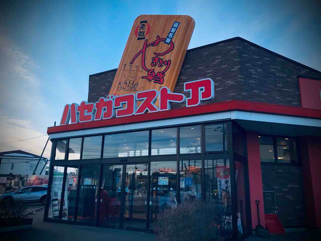 やきとり弁当の超巨大版がハセガワストアのロゴの後ろに聳えています。