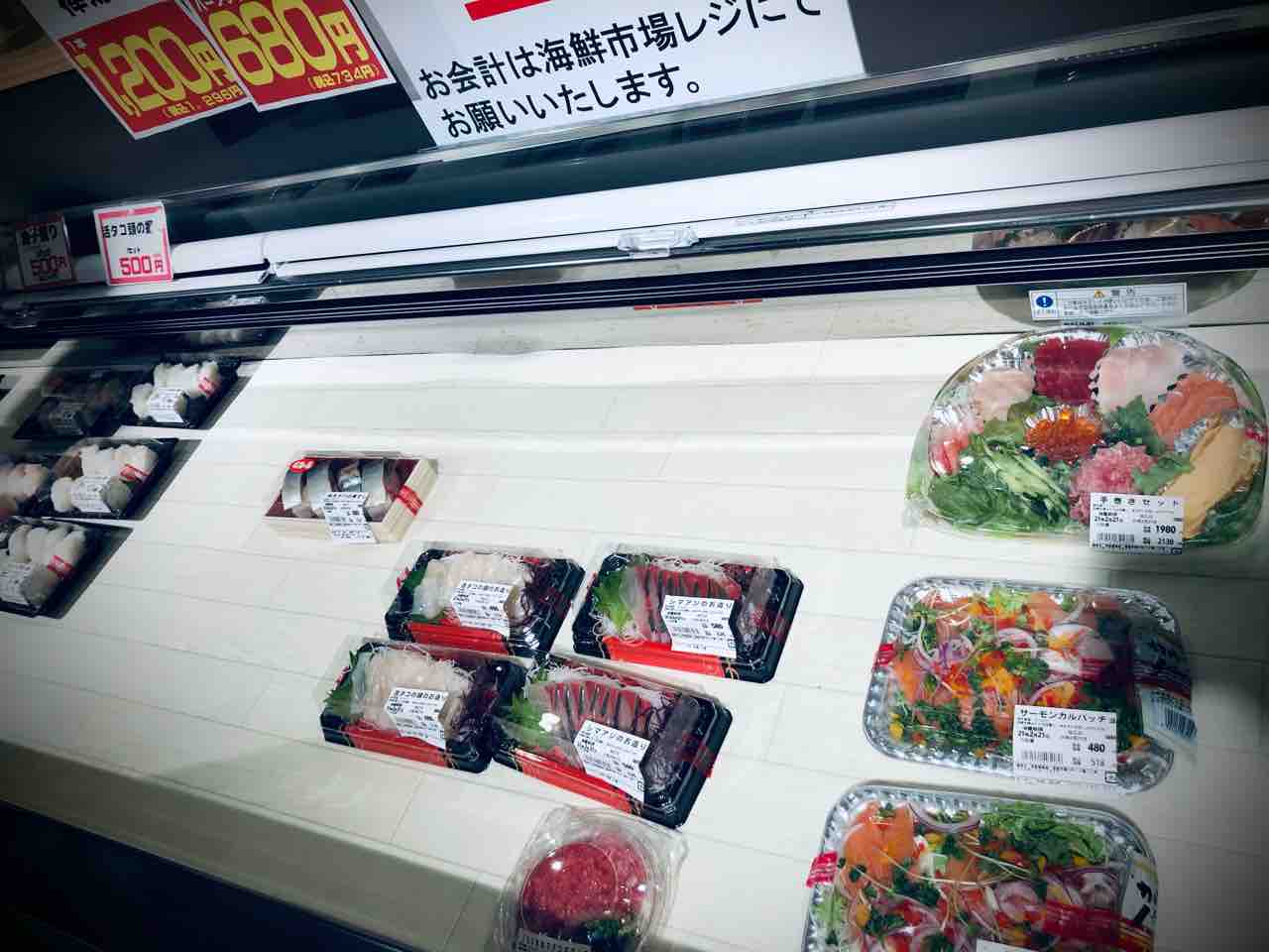 海鮮市場の本店に入店すると 思ったより人が居りました。お寿司の販売スペースに行きお寿司が少ないなぁと思っているとすく補充されていて結構売れているのかなと。