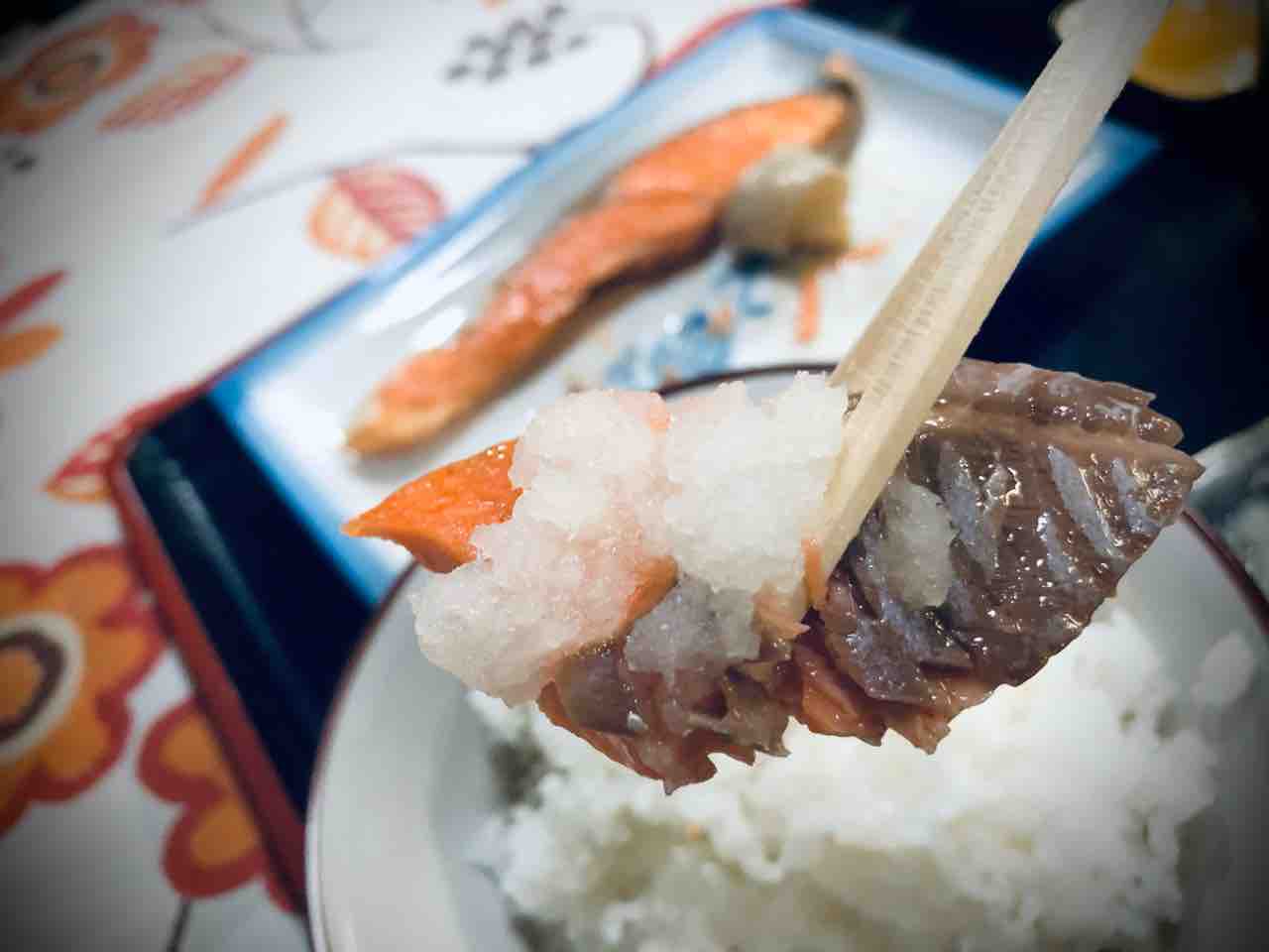 大根おろしと一緒に頂きます…。これもうーん美味い。