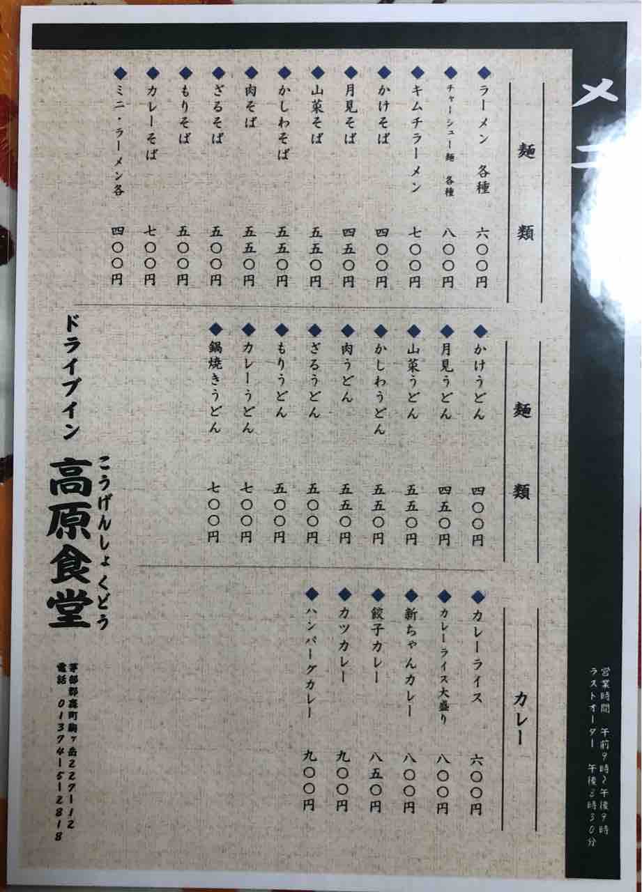 髙原食堂さんに立ち寄りした。
