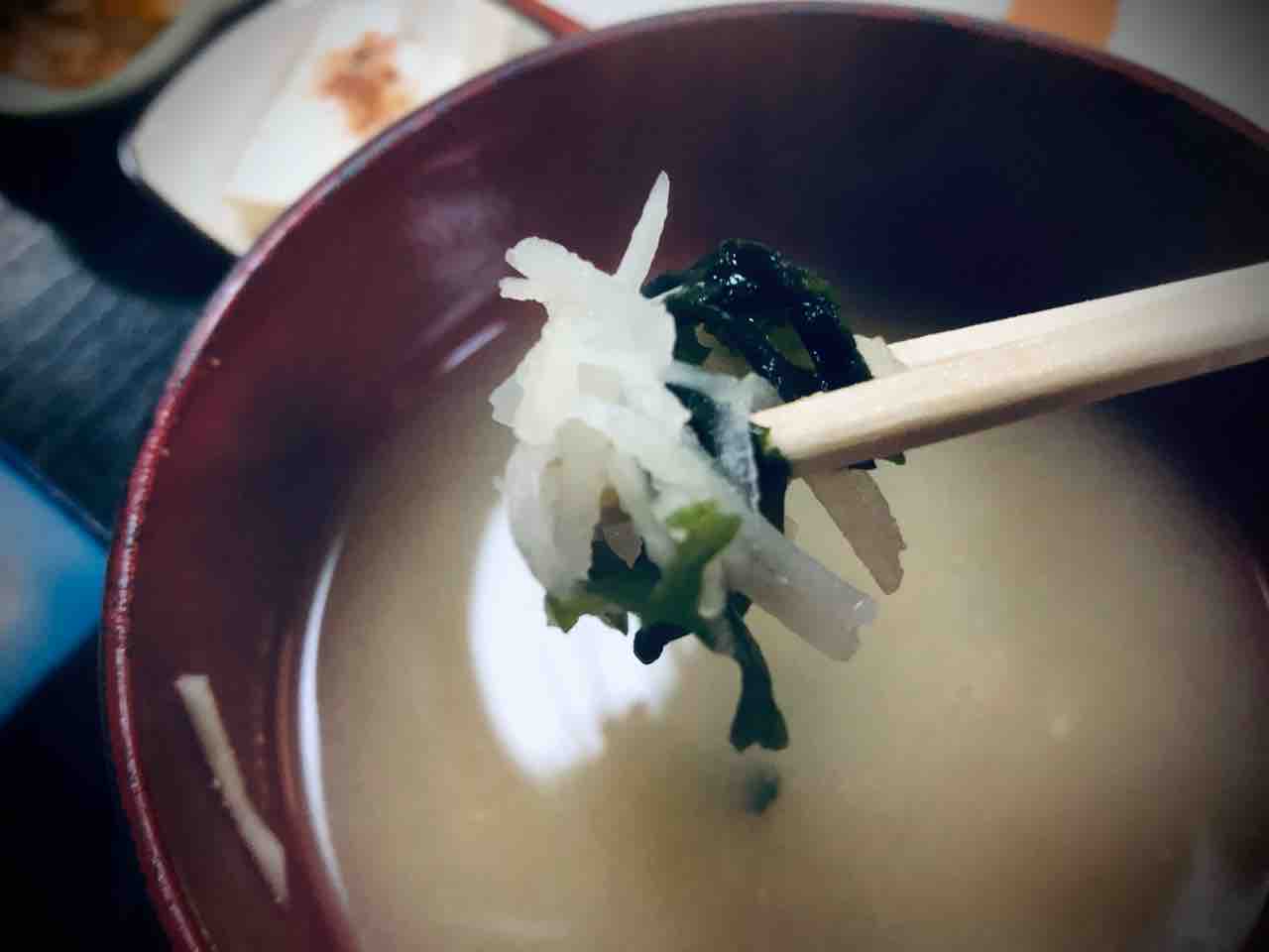 高原食堂さん定番の大根のつまが入った味噌汁も頂きます…気持ち大根が少ないような気がしました。