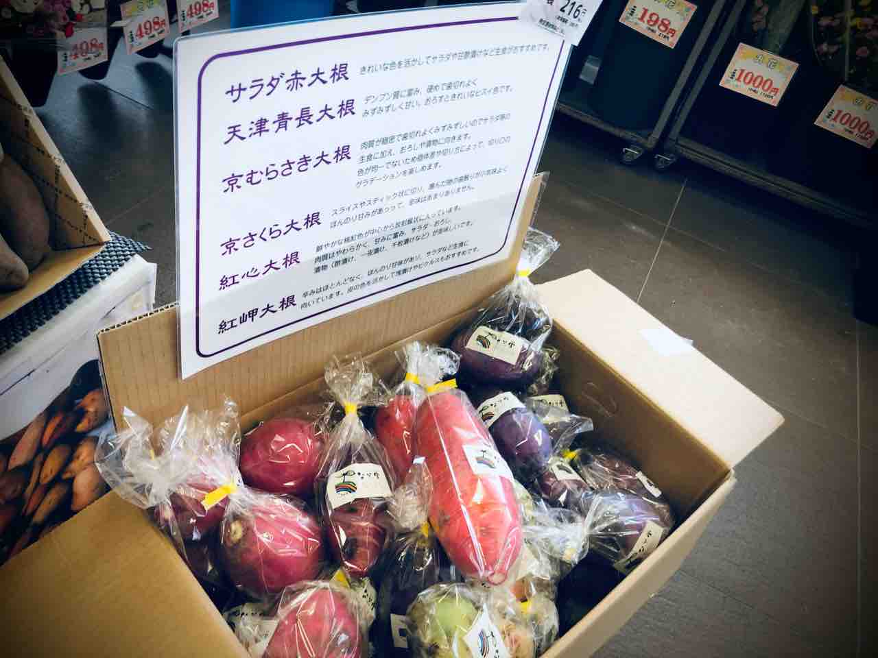 芋を詰め終えると 大根サラダも良いなと思い 京むらさき大根(200円)も購入しました。