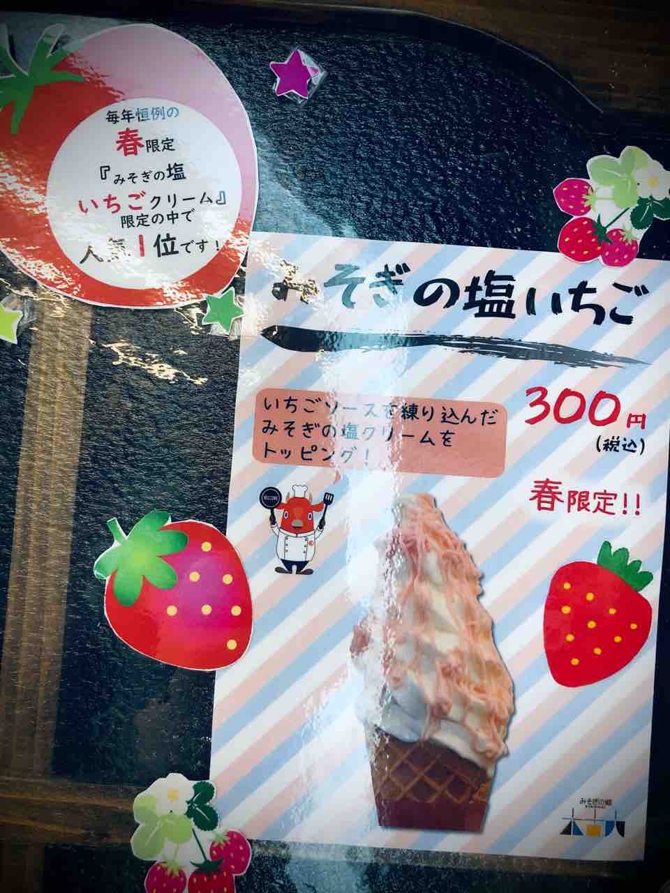 本日の目的の みそぎの塩いちご (300円税込)をキメるべく販売窓口に向かいます。