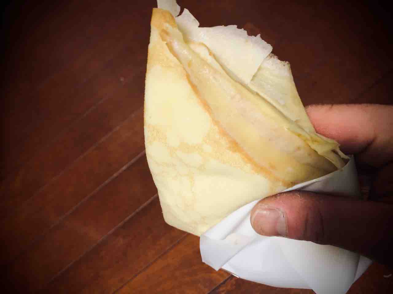 一口たべると カスタードクリームと生クリームの相性が良く生地もフワッとしており 美味しいクレープです。